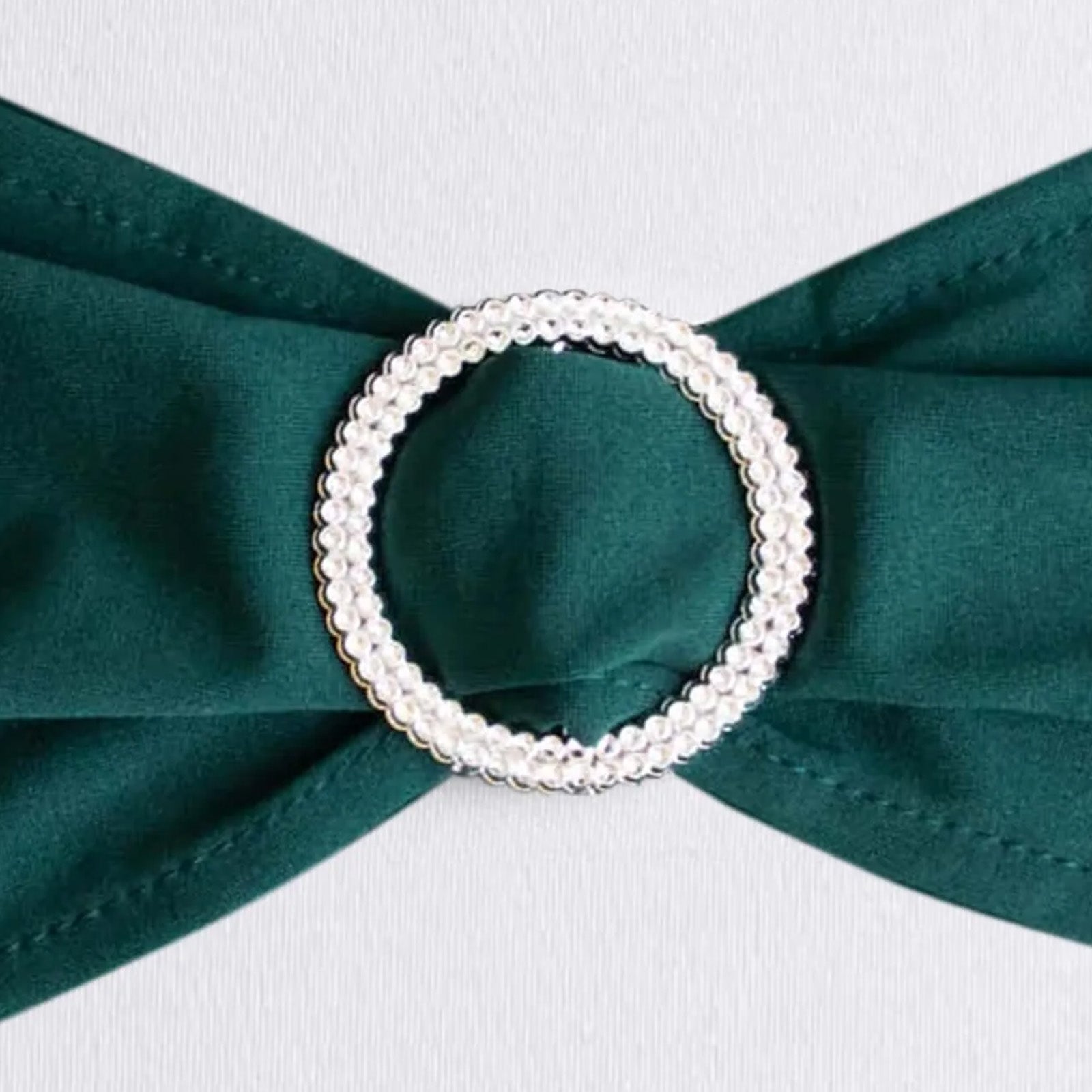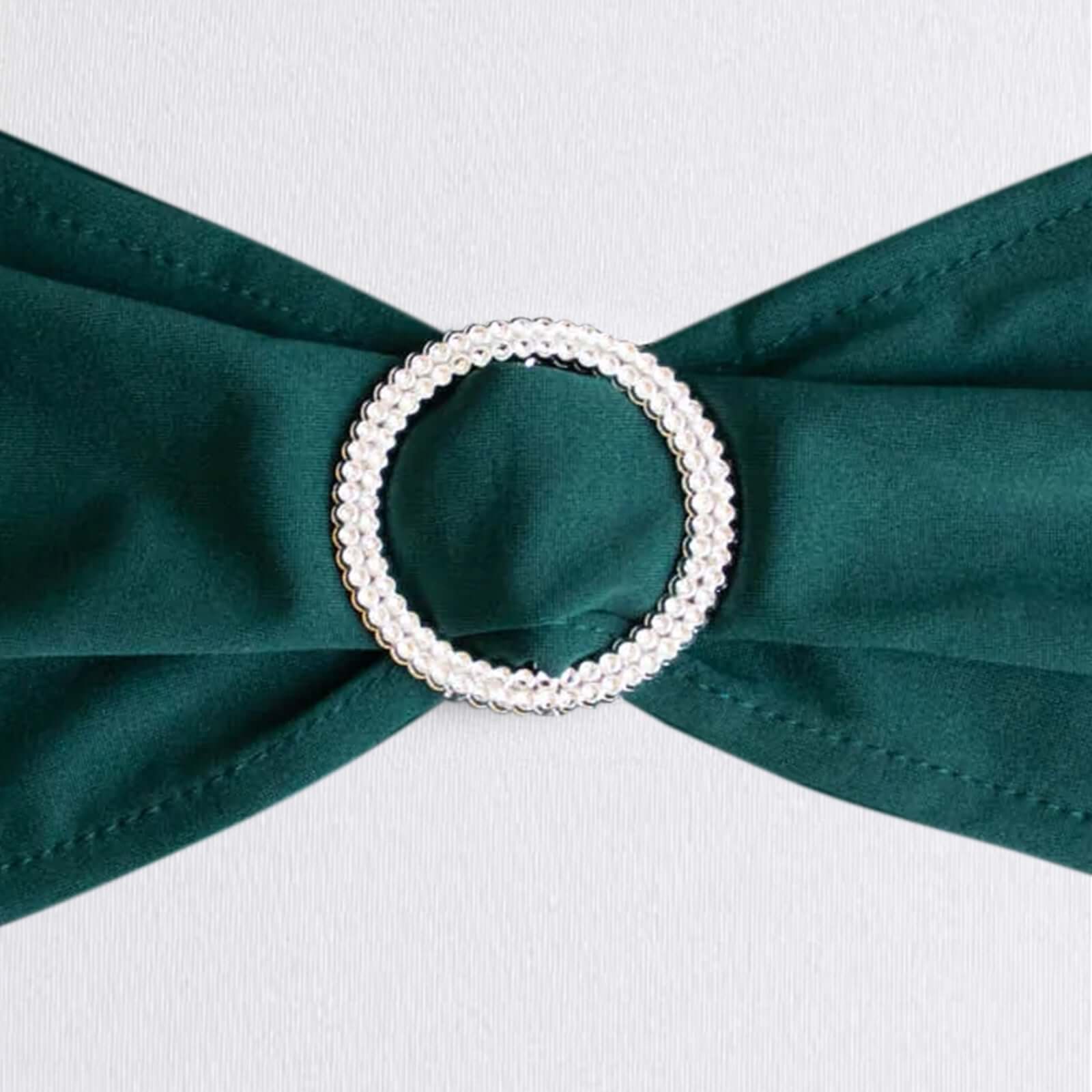 5 Pack Stretch Spandex Chair Sashes Hunter Emerald Green - Reusable Chair Bands with Silver Diamond Ring Slide Buckle 5"x14"