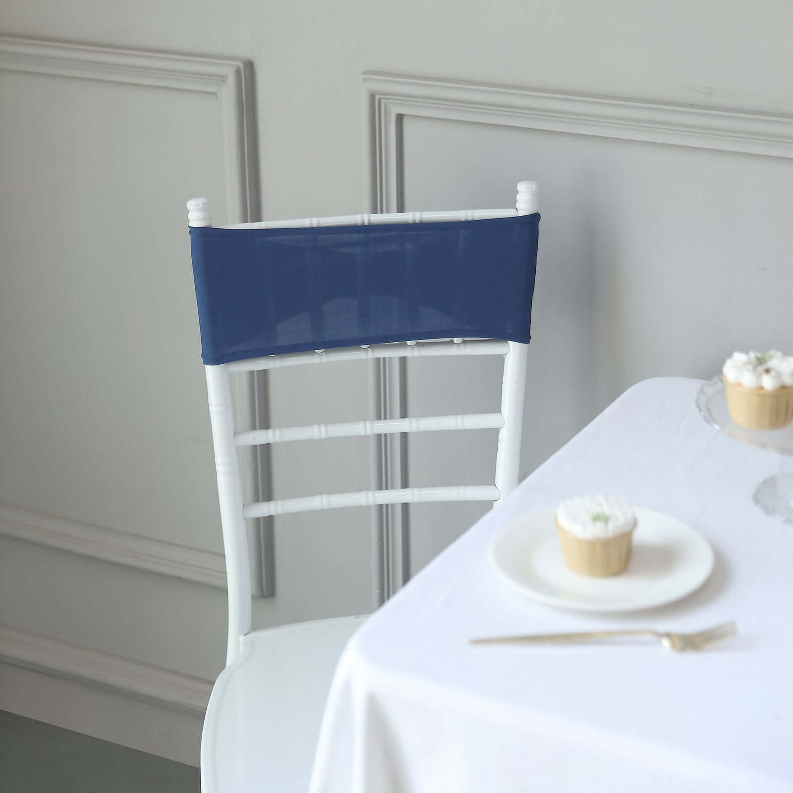 5 Pack Stretch Spandex Chair Sashes Navy Blue - Reusable Chair Bands with Silver Diamond Ring Slide Buckle 5"x14"