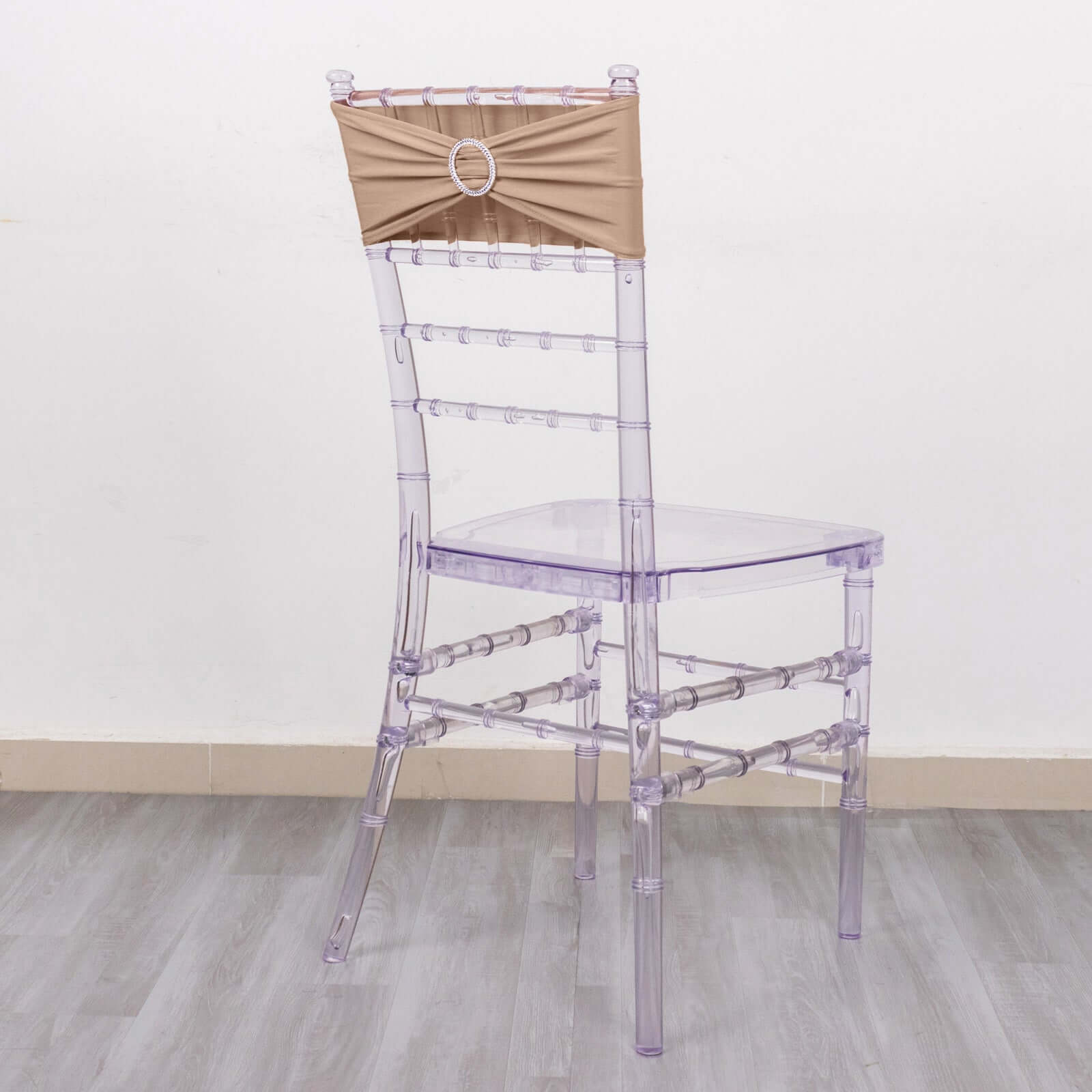 5 Pack Stretch Spandex Chair Sashes Nude - Reusable Chair Bands with Silver Diamond Ring Slide Buckle 5"x14"