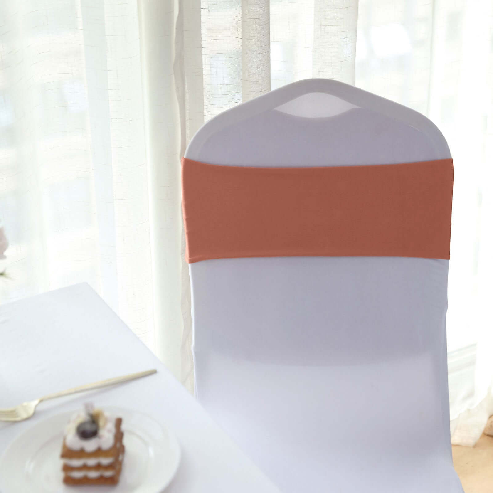 5 Pack Stretch Spandex Chair Sashes Terracotta (Rust) - Fitted Finish Two Ply Heavy Duty Chair Bands 5"x12"