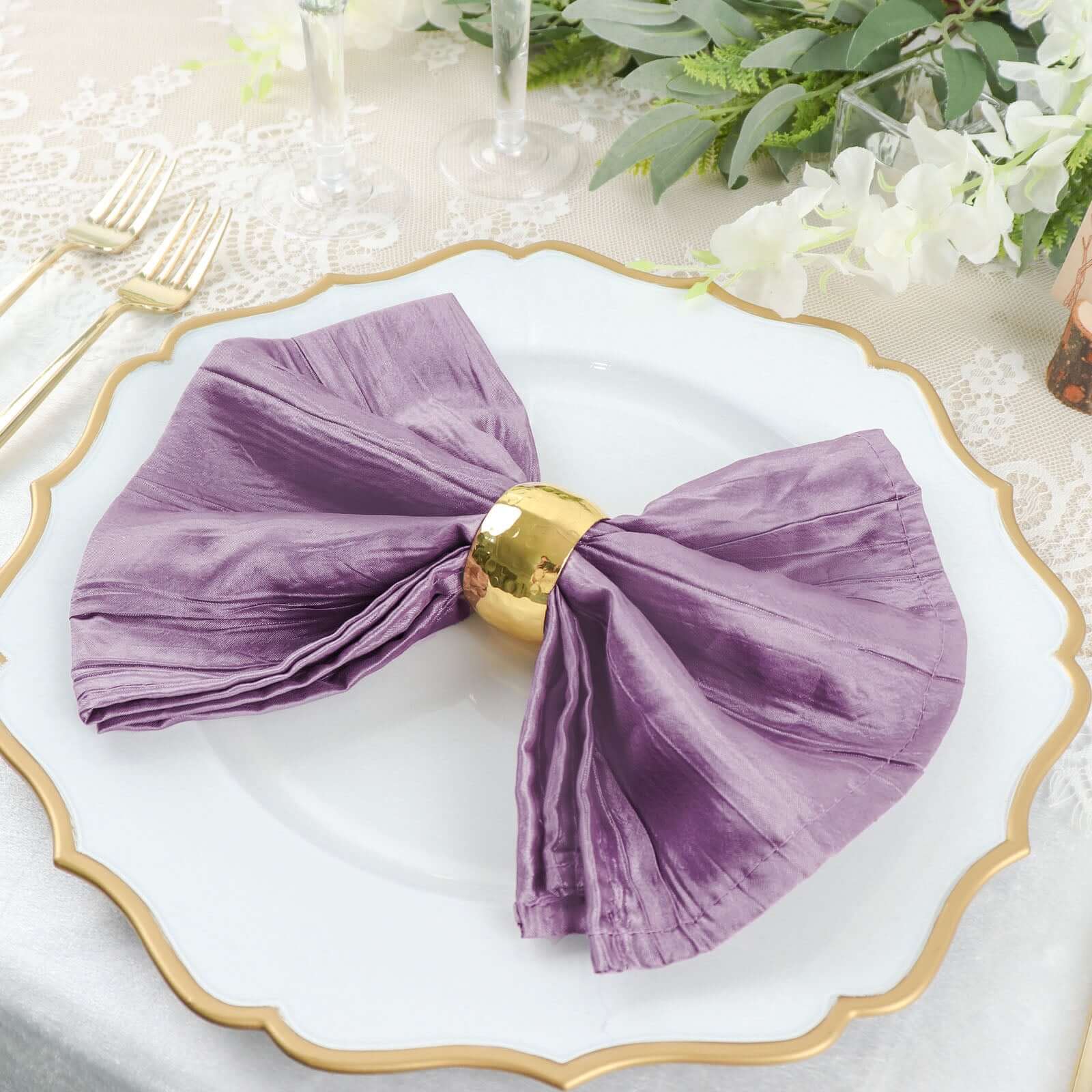 5 Pack Taffeta 20"x20" Napkins Violet Amethyst - Accordion Crinkle Dinner Napkins