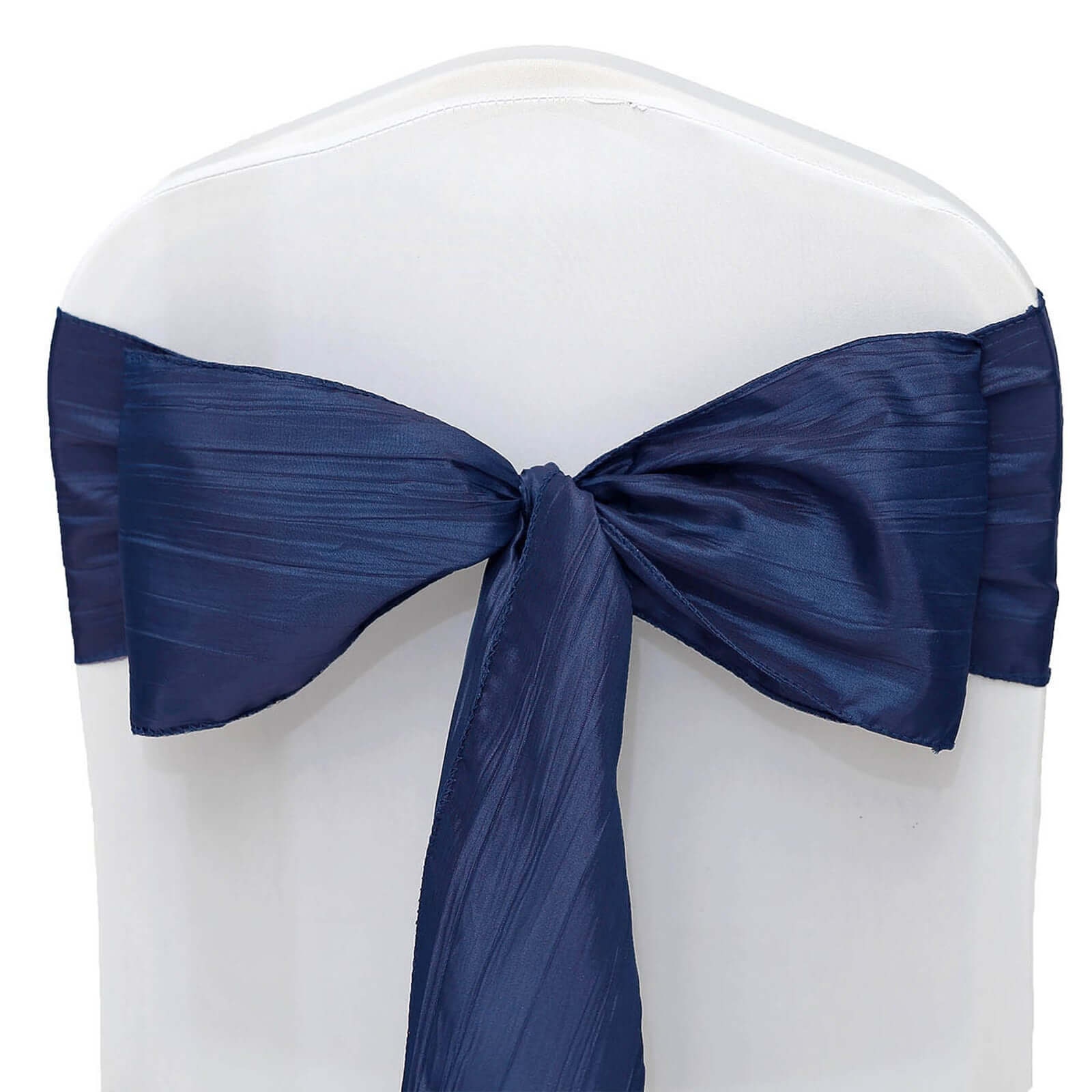 5 Pack Taffeta 6"x106" Chair Sashes Navy Blue Accordion Crinkle Texture - Stylish Decor for Weddings & Gatherings