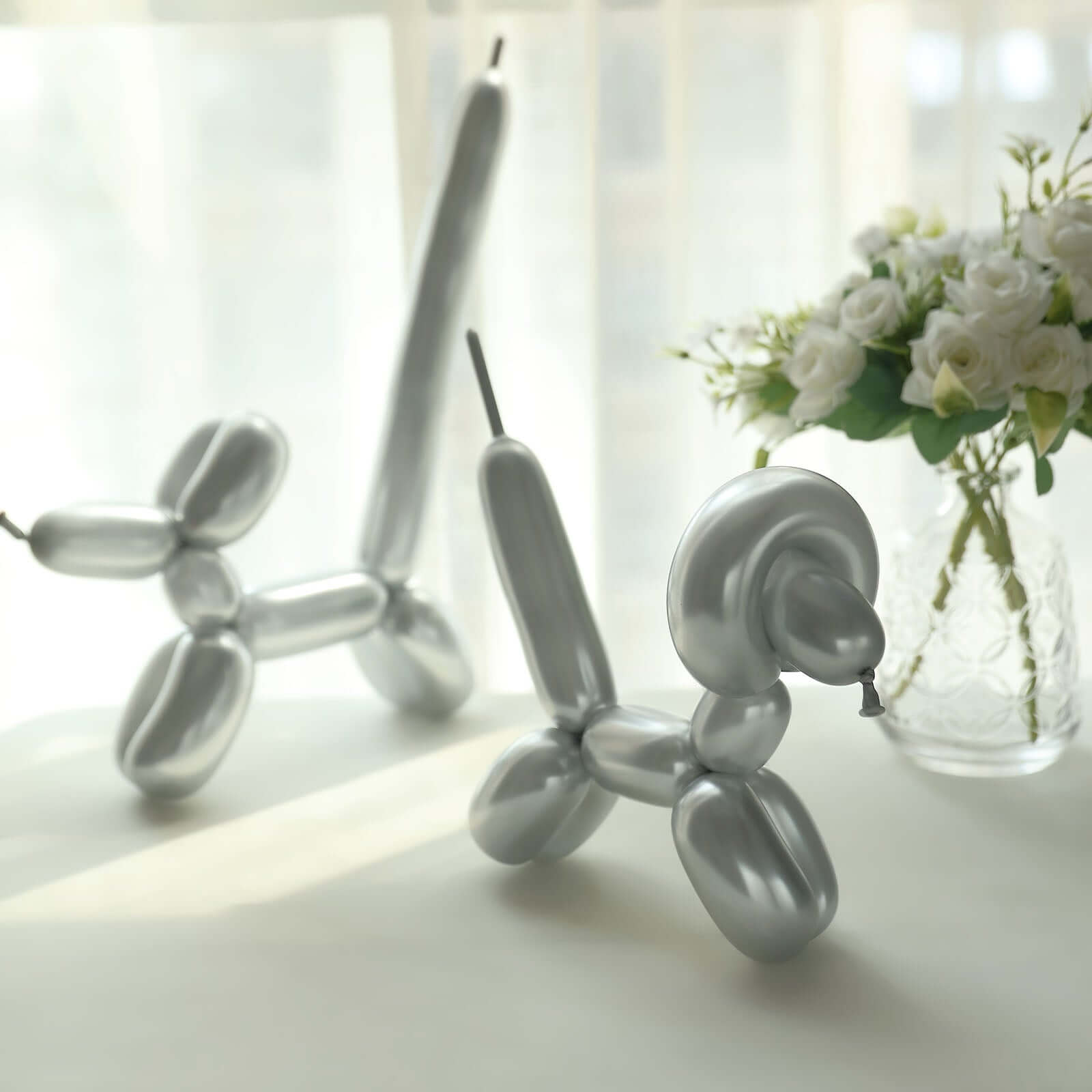50 Pack Assorted Metallic Silver Long Latex Balloons For Twisting Magic, Animal Modelling Party Balloons