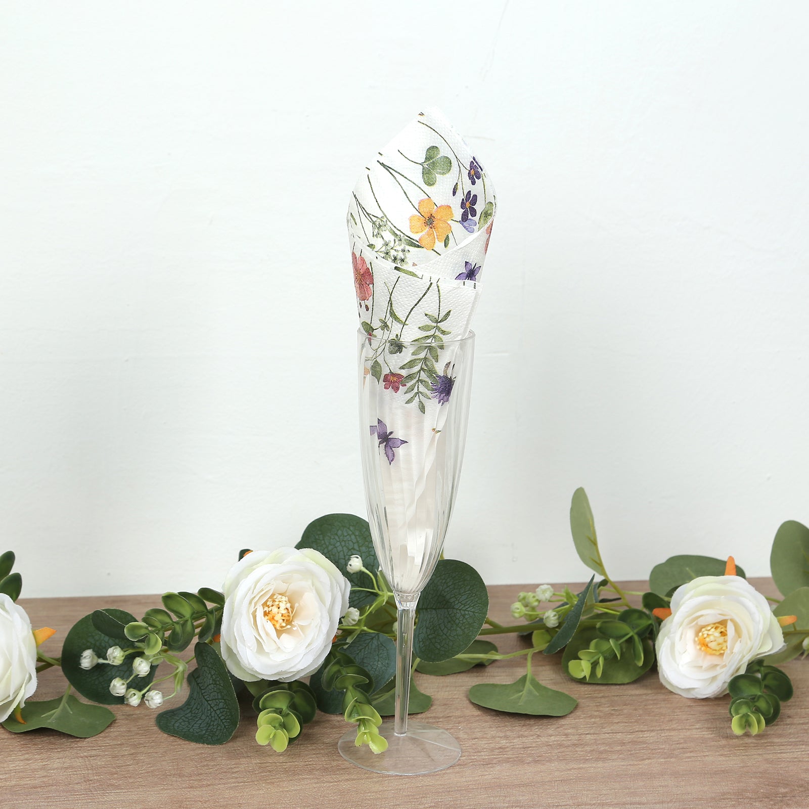 50-Pack Paper Cocktail Napkins with Wildflower Butterfly Design - Disposable 2 Ply Beverage Napkins for Parties 6.5"x6.5"