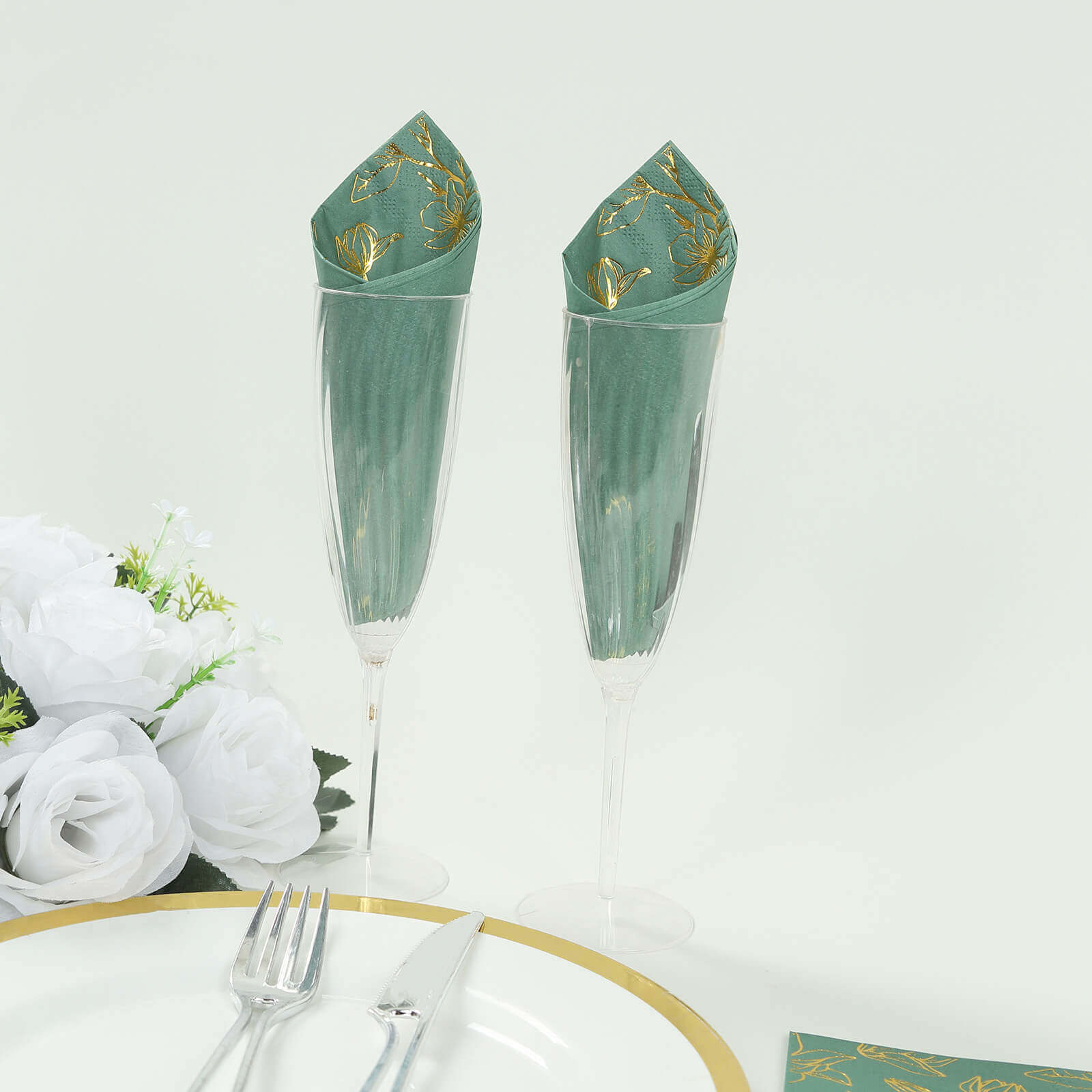 50-Pack Paper Dinner Napkins Dusty Sage Green with Gold Magnolia Flowers Print 2-Ply - Disposable Soft Napkins for Parties