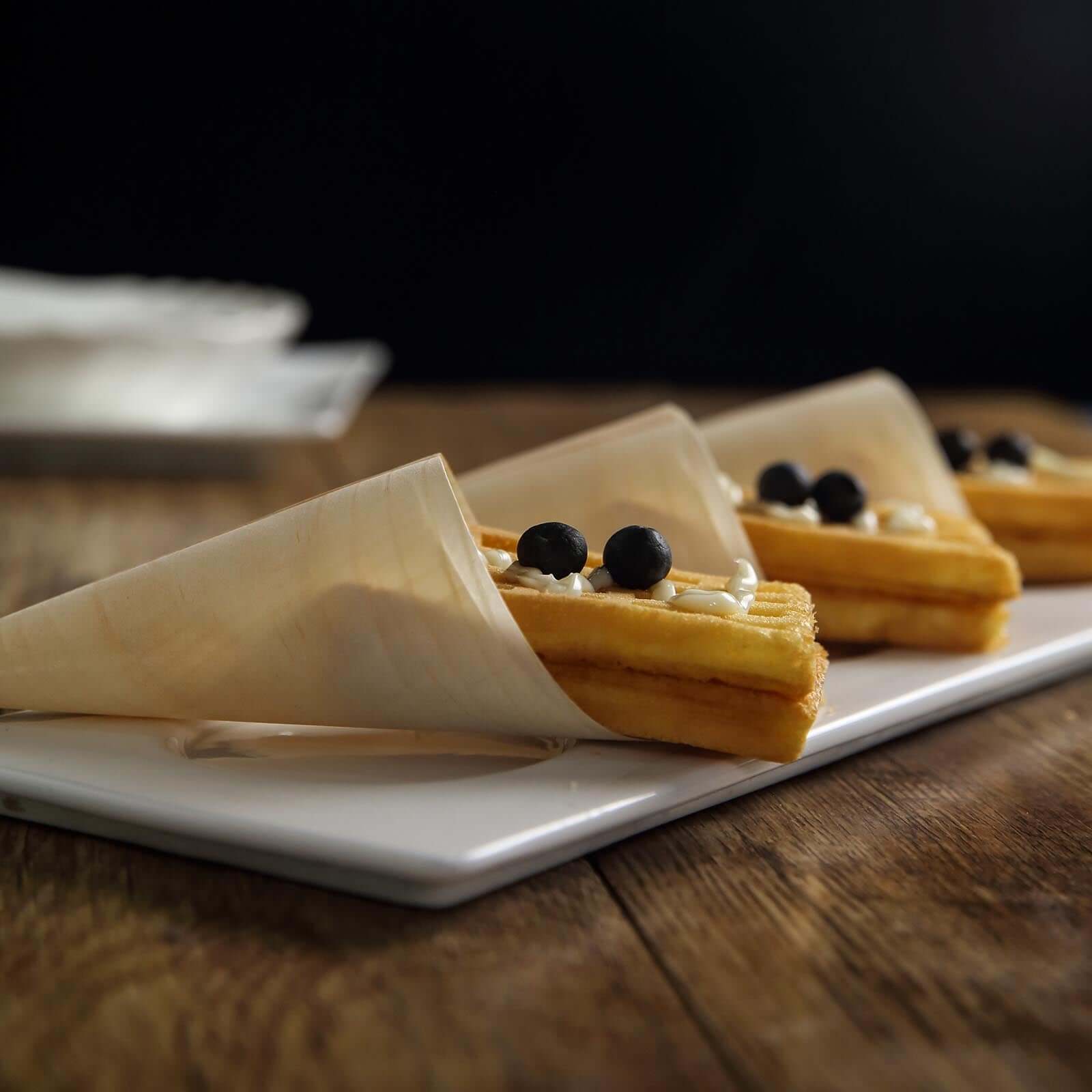 50-Pack Pine Wood Food Cones Eco Friendly Natural Disposable Design - 100% Biodegradable Tasting Serving Cones 6"