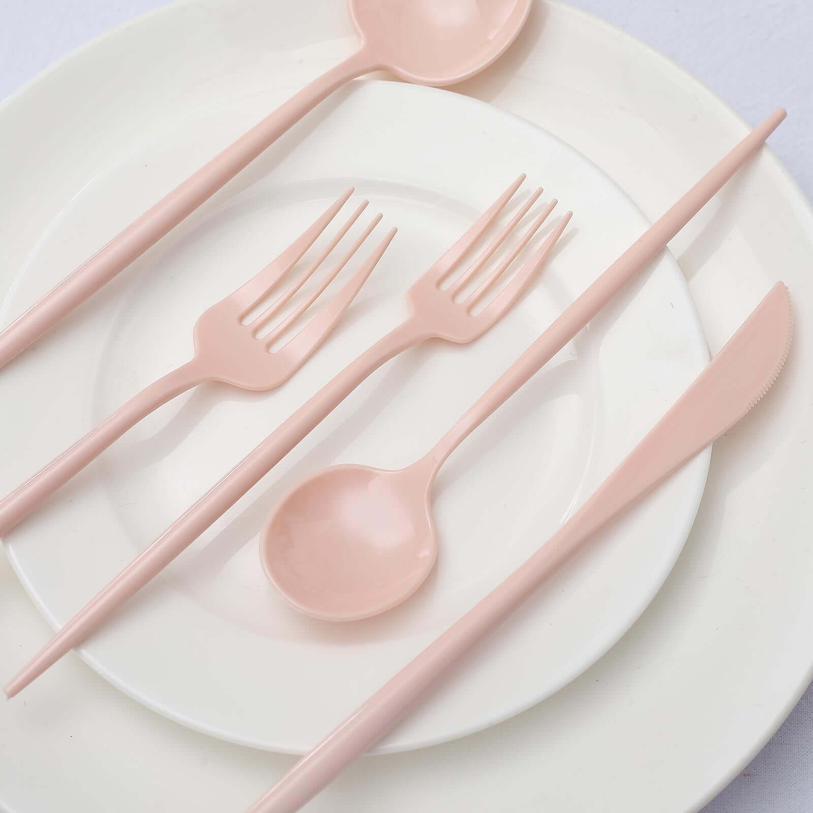 50-Pack Plastic Utensil Set Blush Pink - Premium Disposable Heavy Duty Sleek Flatware