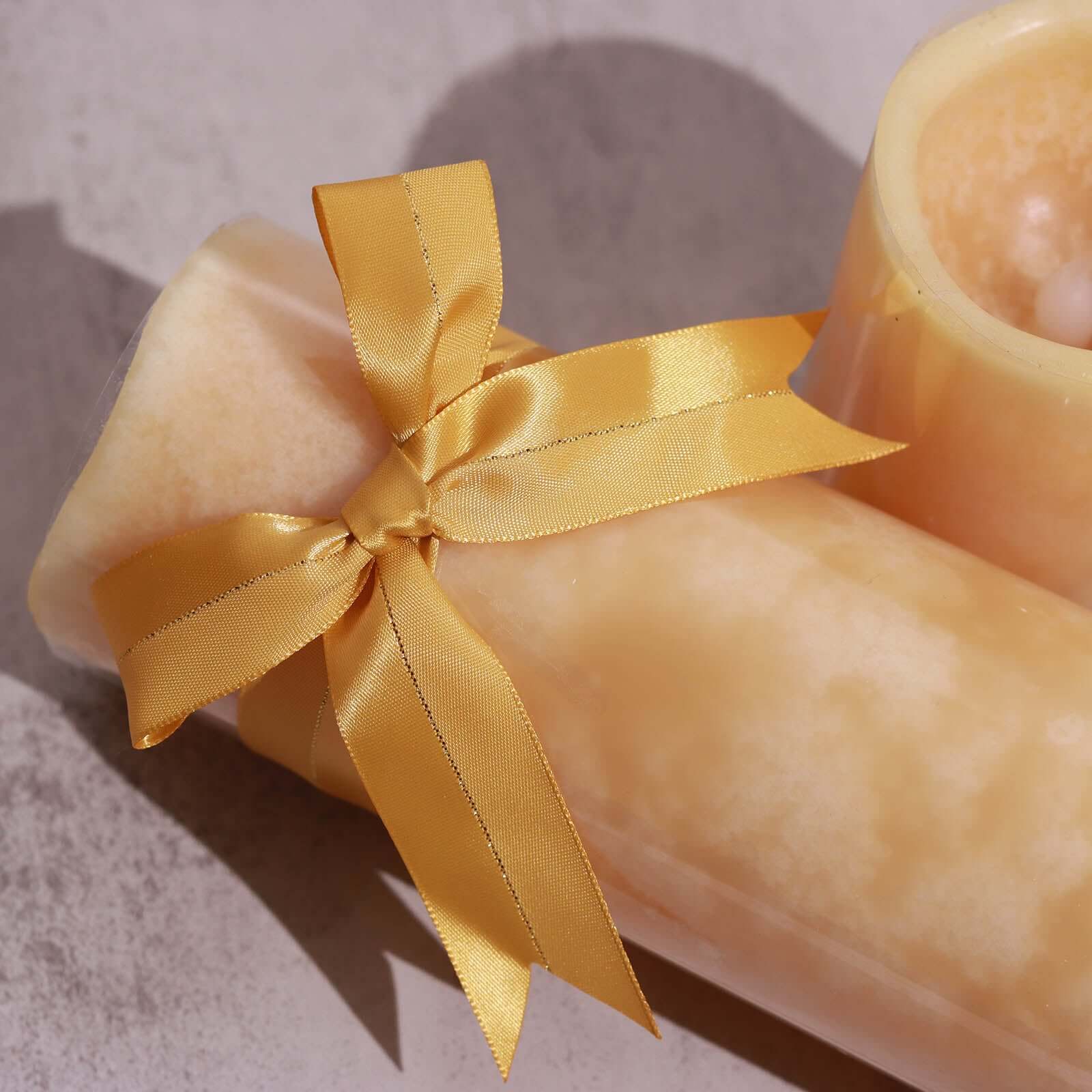 50 Pcs 10" Gold Pre Tied Ribbon Bows, Satin Ribbon With Gold Foil Lining For Gift Basket and Party Favors Decor