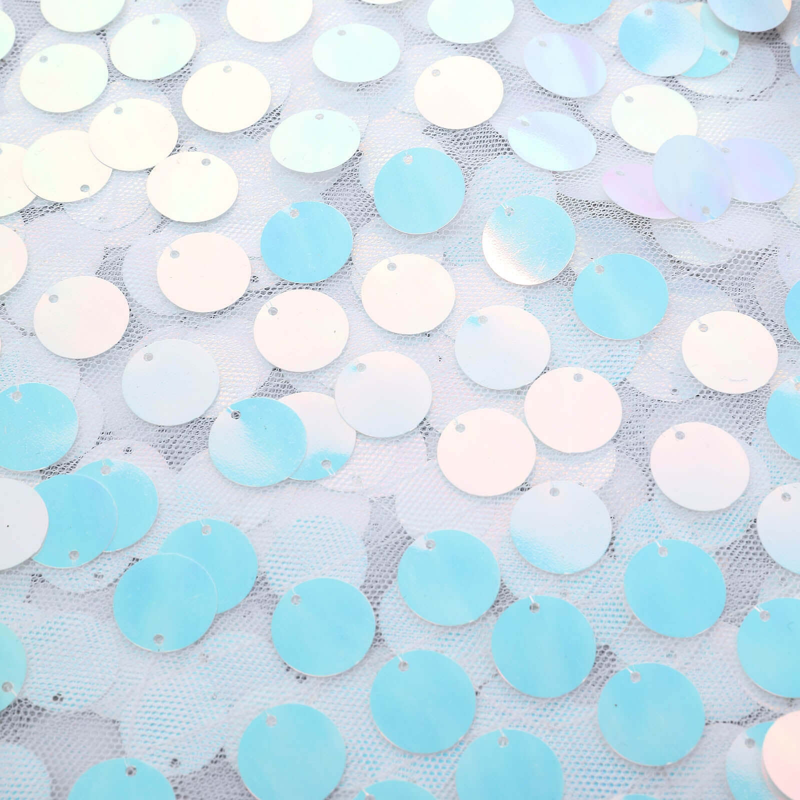 54"x4 Yards Iridescent Blue Big Payette Sequin Fabric Roll, Mesh Sequin DIY Craft Fabric Bolt
