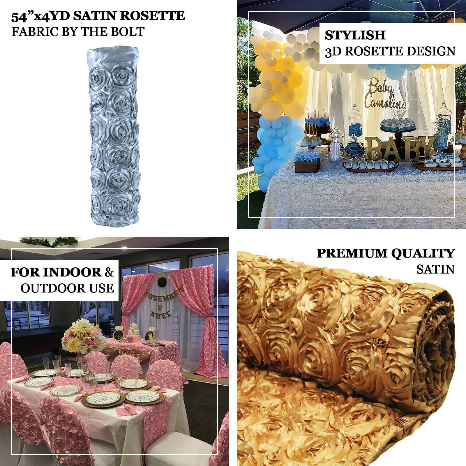 54"x4yd White Satin Rosette Fabric By The Bolt, DIY Craft Fabric Roll