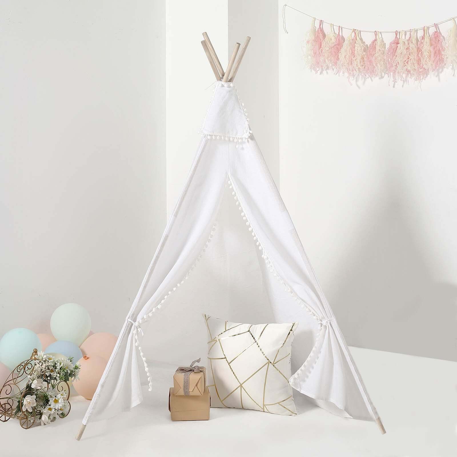 5ft Kids Linen Teepee Play Tent, Toddler Indoor Outdoor Playhouse With Window