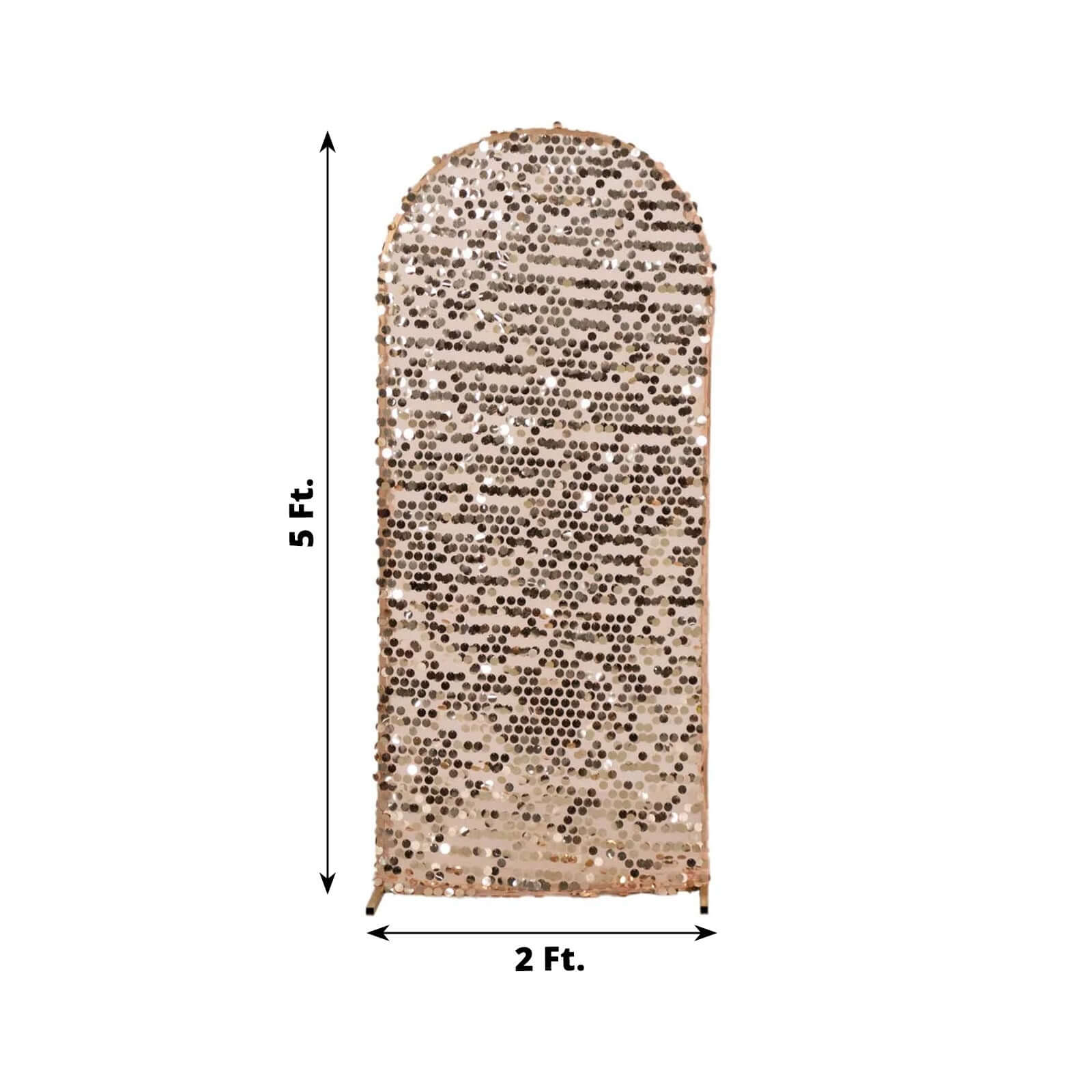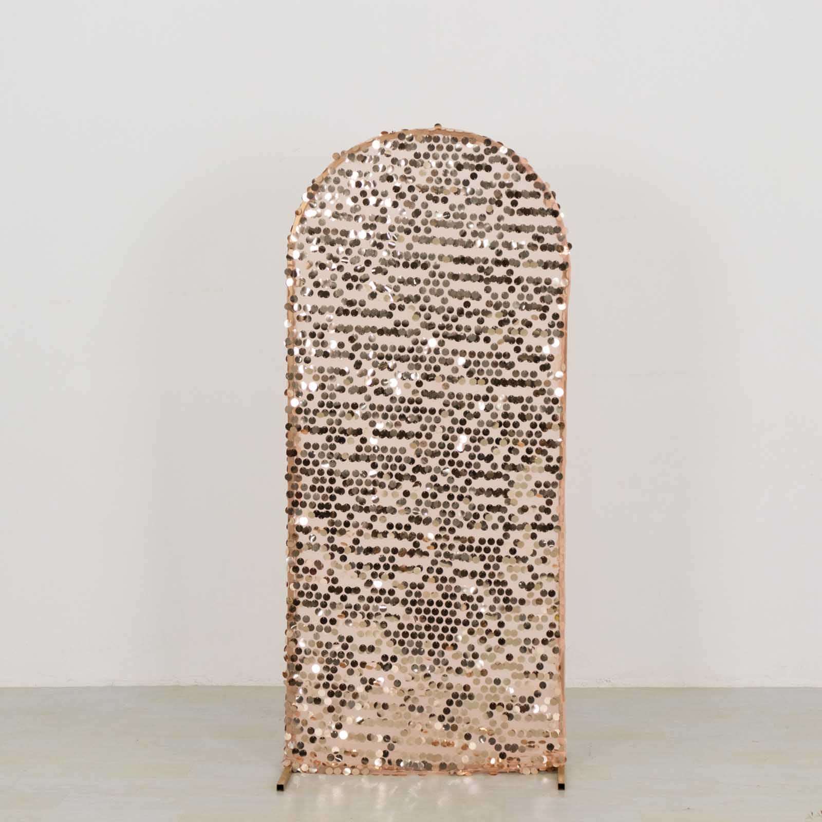 5ft Sparkly Rose Gold Big Payette Sequin Fitted Wedding Arch Cover for Round Top Chiara Backdrop Stand