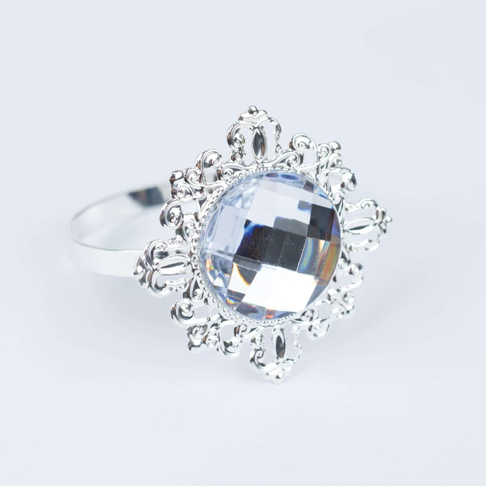 6 Pack 2" Silver Metal Clear Crystal Rhinestone Napkin Rings, Diamond Bling Napkin Holders