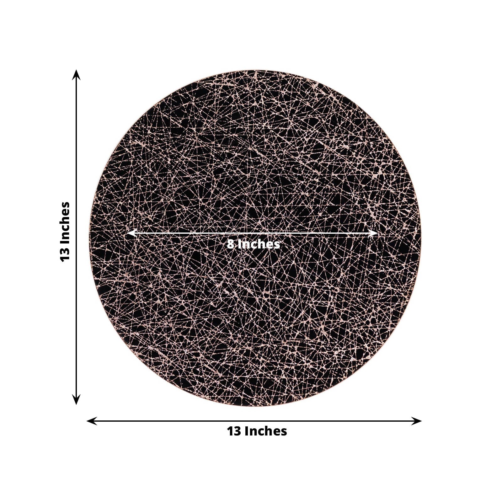6-Pack Acrylic Round Charger Plates 13" in Black with Gold Glitter Abstract Lines Pattern, Decorative Dinner Party Charger Tableware