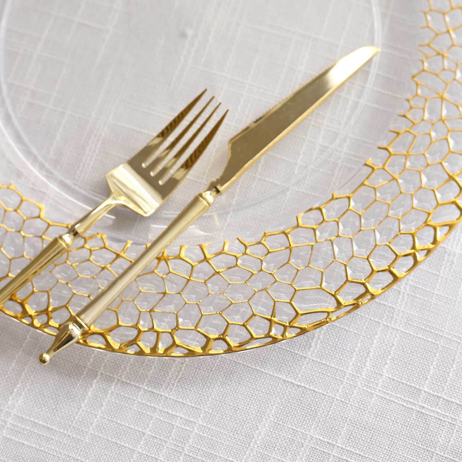6-Pack Acrylic Round Charger Plates 13" in Clear with Gold Hammered Rim, Decorative Plastic Charger Tableware