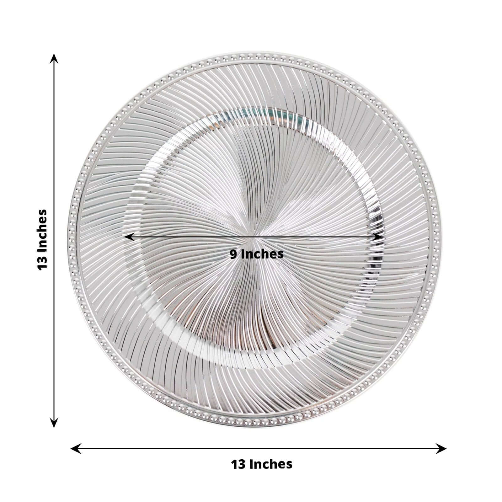 6-Pack Acrylic Round Charger Plates 13" in Metallic Silver Swirl Pattern with Beaded Rim, Plastic Decorative Dinner Party Charger Tableware