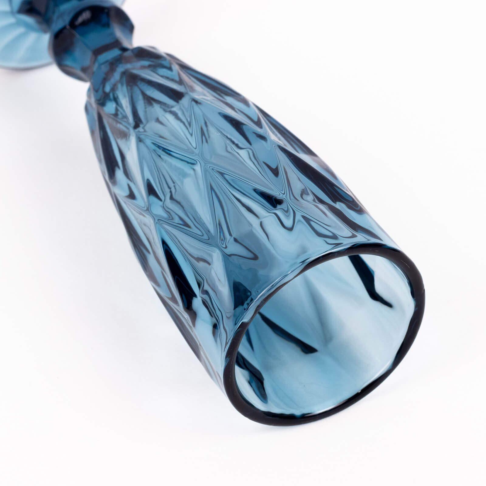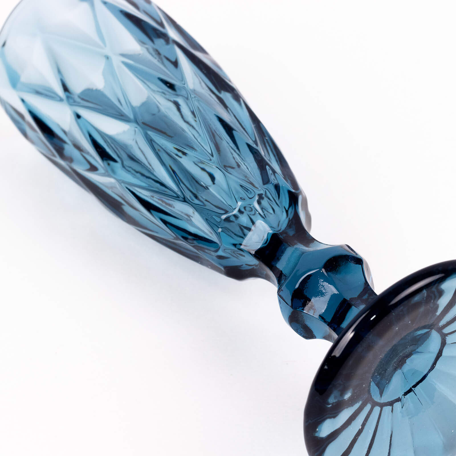 6-Pack Champagne Flute Glasses Transparent Ocean Blue Textured Crystal Cut Design - Chic Wine Goblets for Parties & Events 6oz 8"