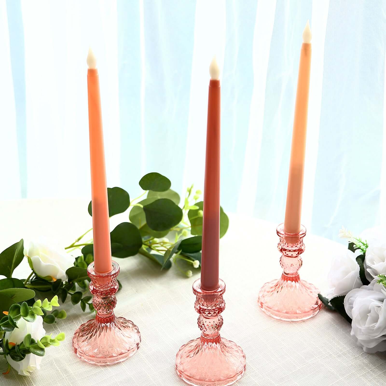 6-Pack Glass Taper Candlestick Holders Diamond Pattern Design Dusty Rose - Reversible Crystal Pillar Votive Stands 4"