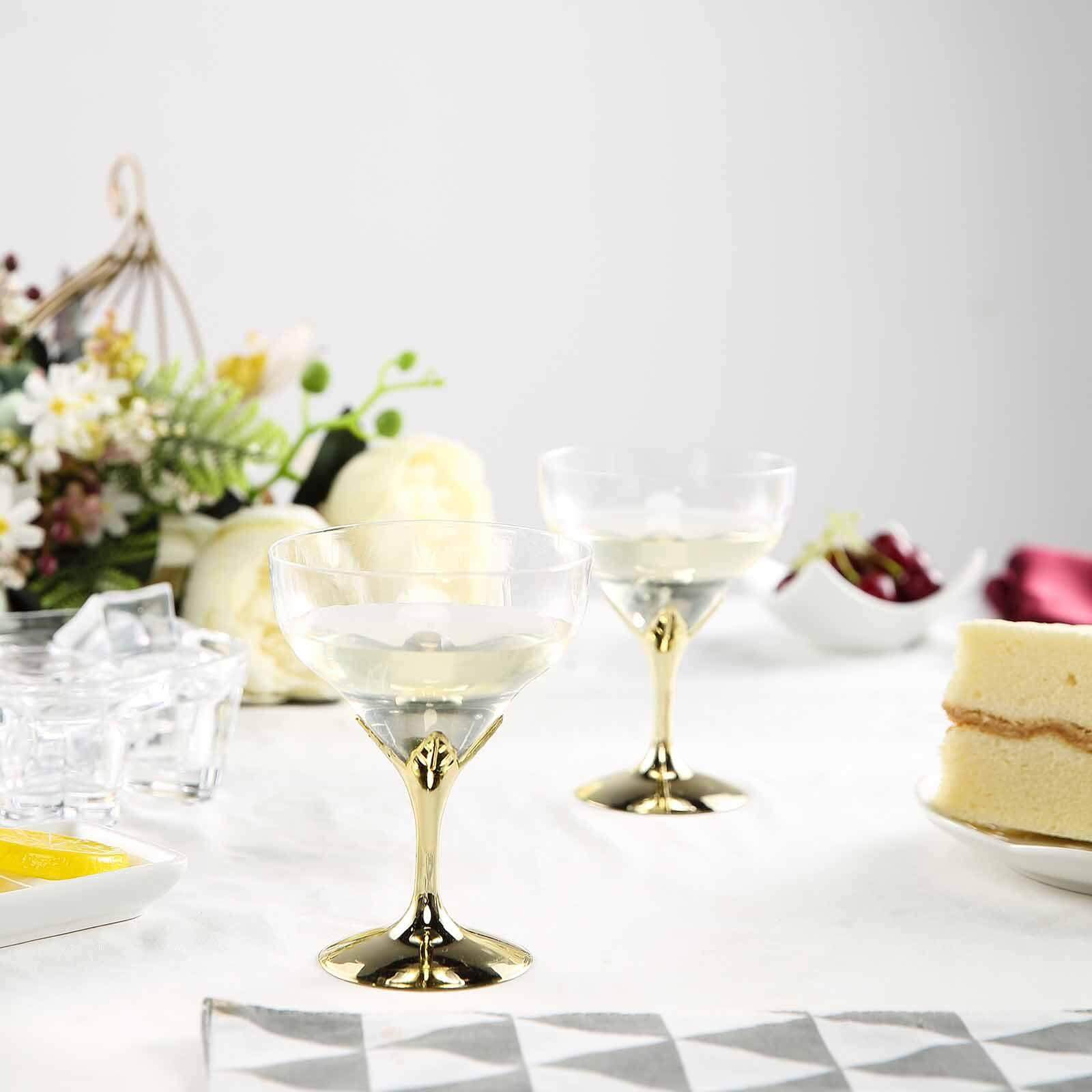 6-Pack Plastic Champagne Glasses Gold Hard Material - Durable Disposable Goblets for Wine 5oz