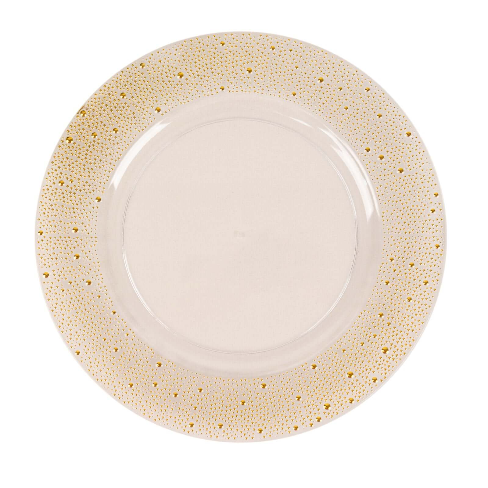 6-Pack Plastic Round Charger Plates 13" in Clear with Gold Pearl Beaded Rim, Upscale Dinner Serving Plates