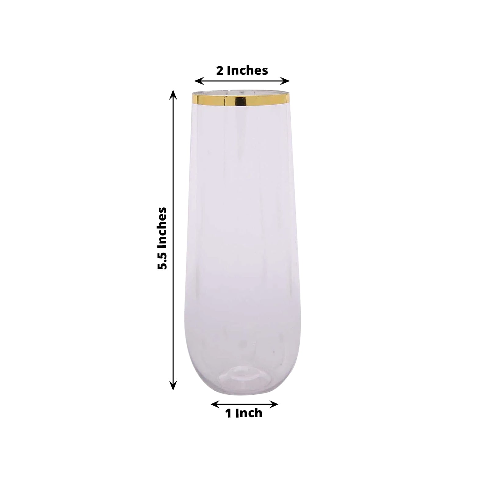 6 Pack Plastic Champagne Glasses in Clear with Gold Rim, Reusable Lightweight Champagne Flutes 9oz
