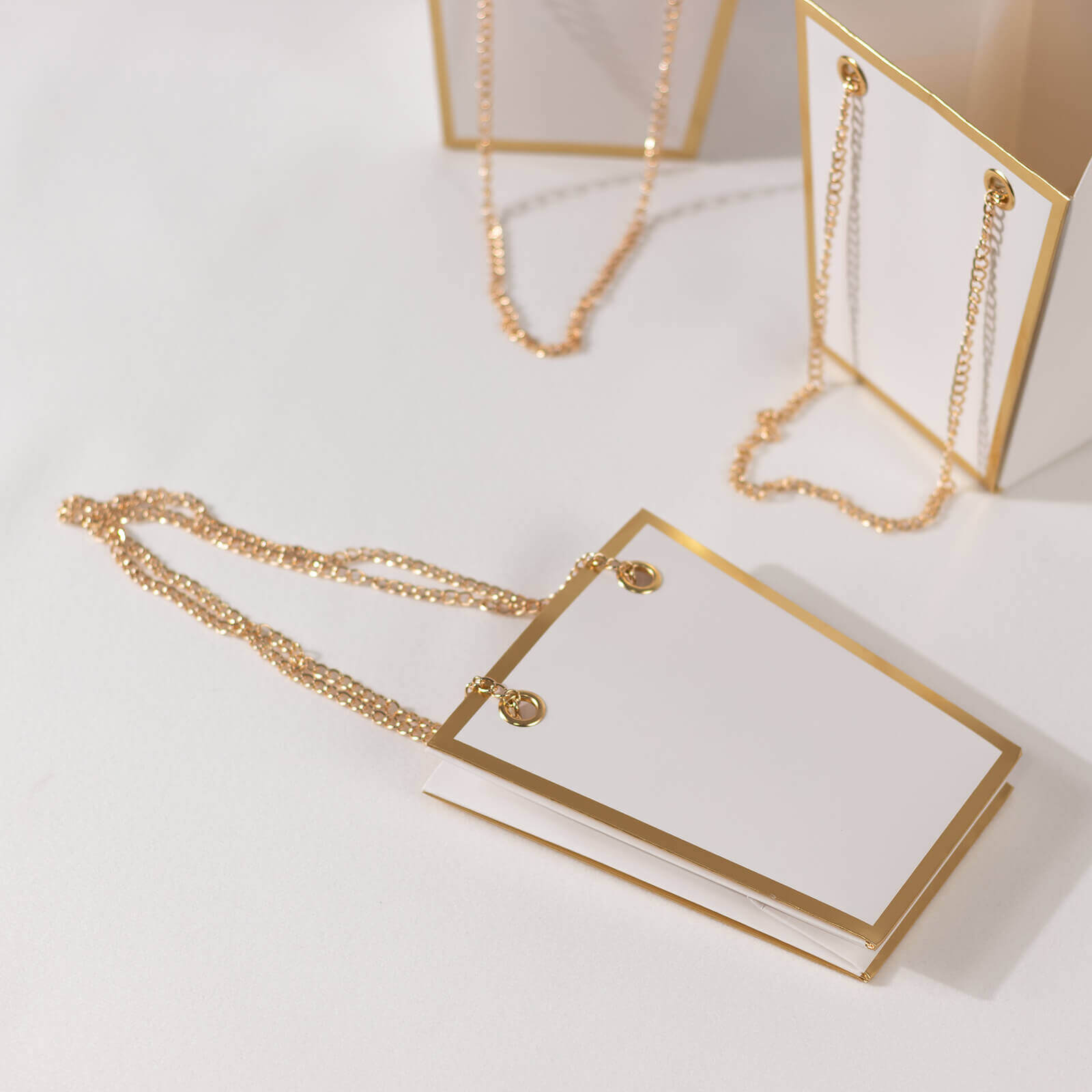 6 Pack White Gold Edge Paper Flower Gift Bags With Metal Chain Handles, Trapezoid Party Favor Tote Bags - 5"x6"