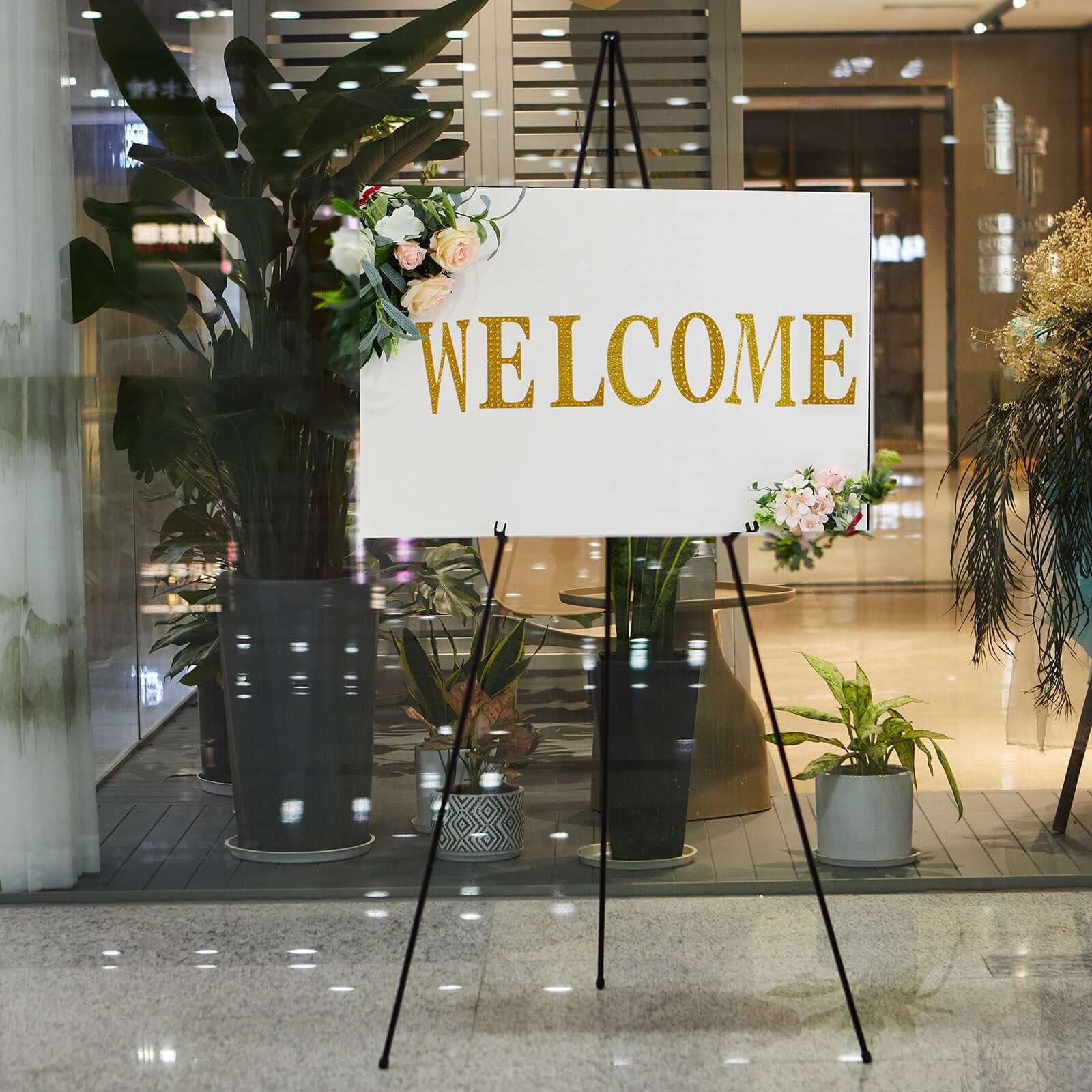 65" Black Metal Sign Holder Easel Stand, Collapsible Tripod Stand
