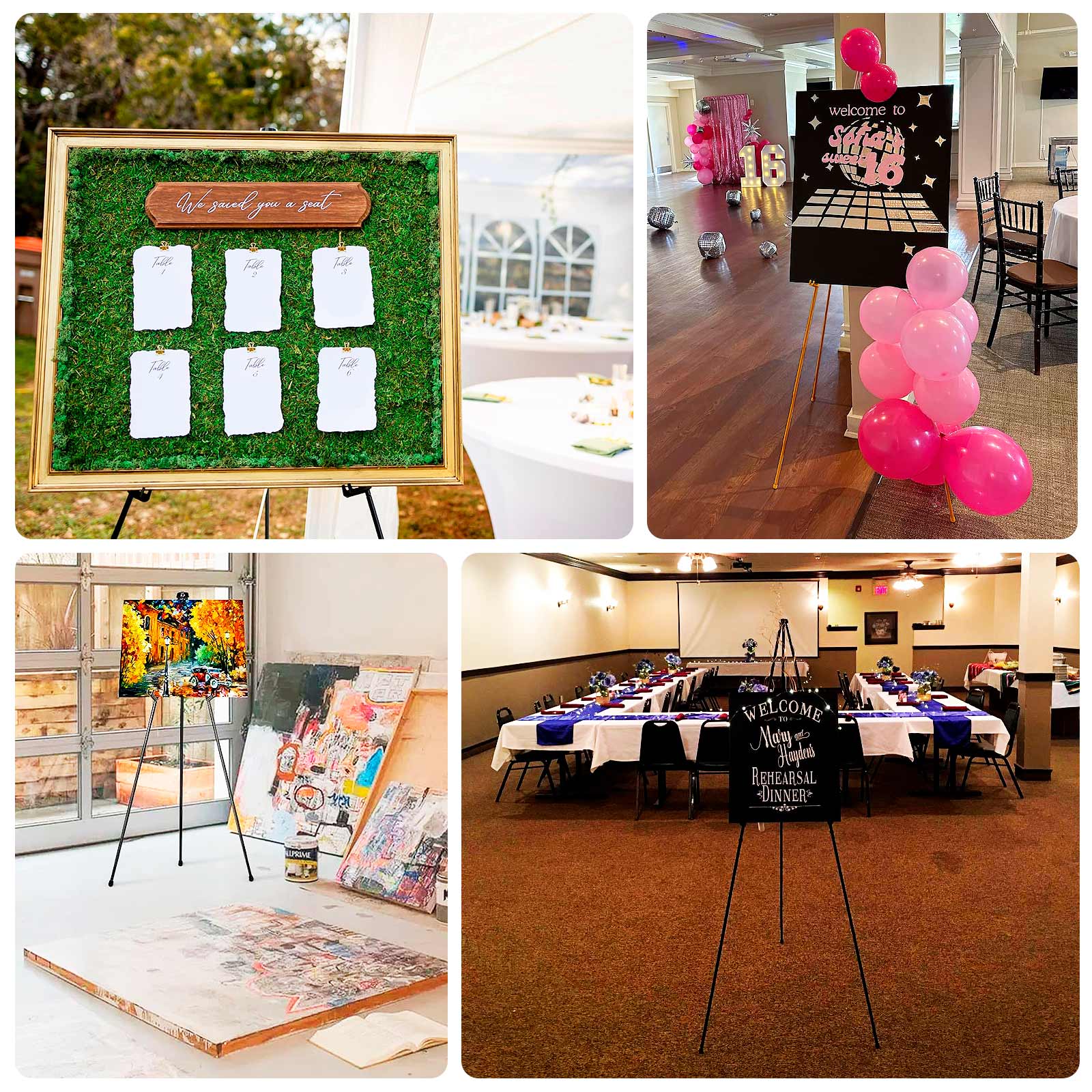 - Uses: Trade shows, office presentations, event and store signs, poster and dry erase boards, and other lightweight art and boards. Also used at weddings, art exhibitions, and shopping malls for promotions.