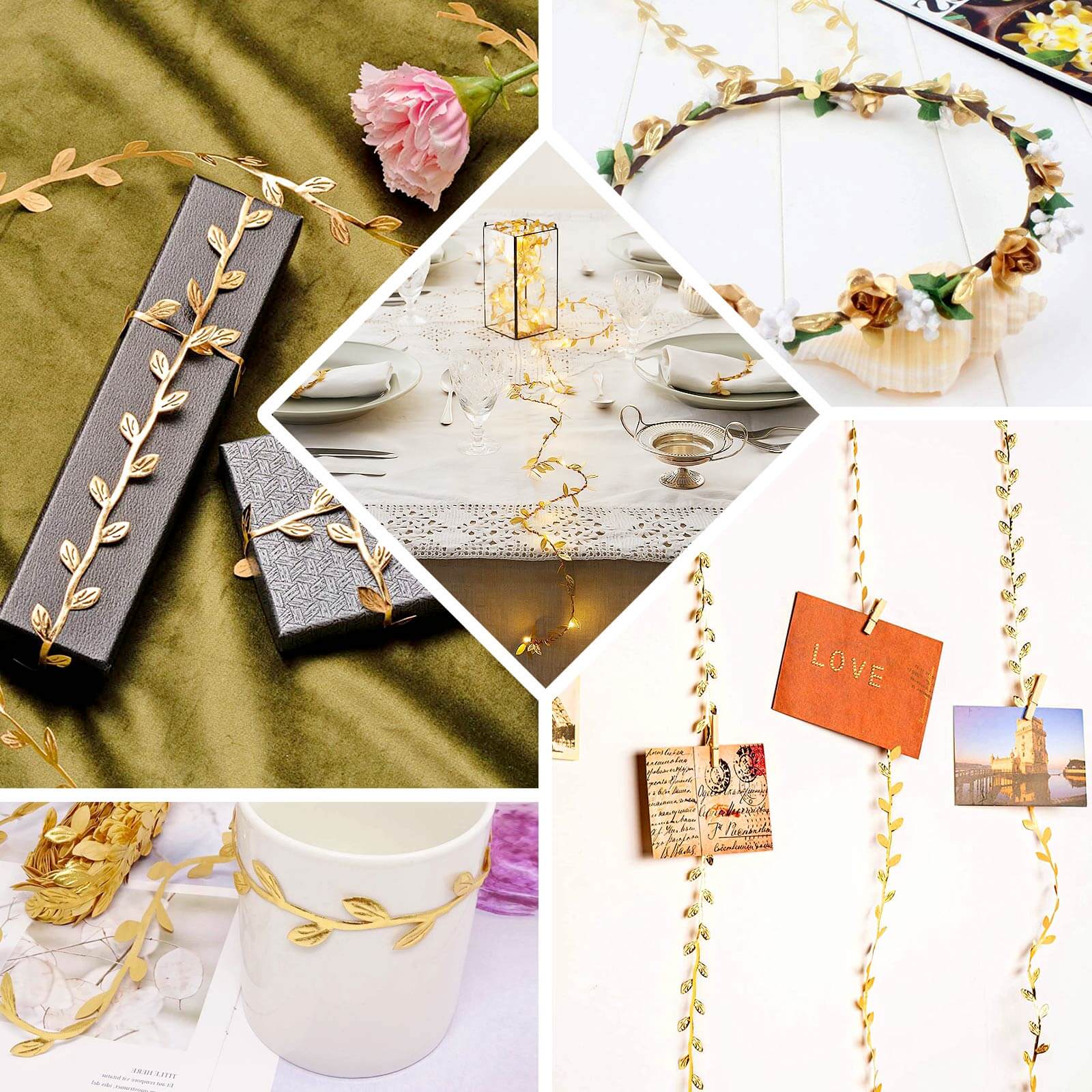 67ft Olive Gold Leaf Ribbon Trim, Artificial Vines Leaf Garland For DIY Craft Party Wedding Home Decor