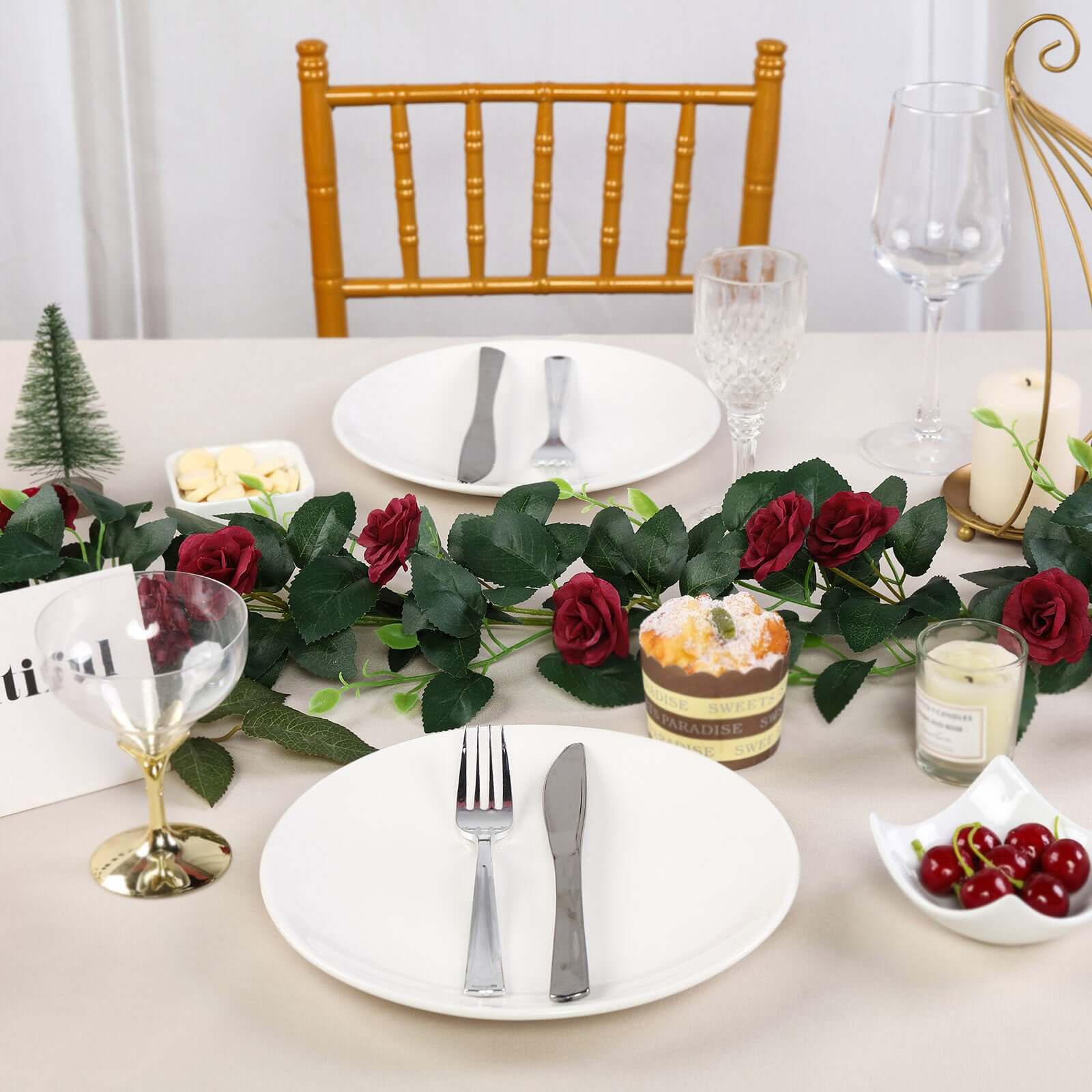 6ft 20 Burgundy Artificial Silk Roses Flower Garland, Hanging Vine