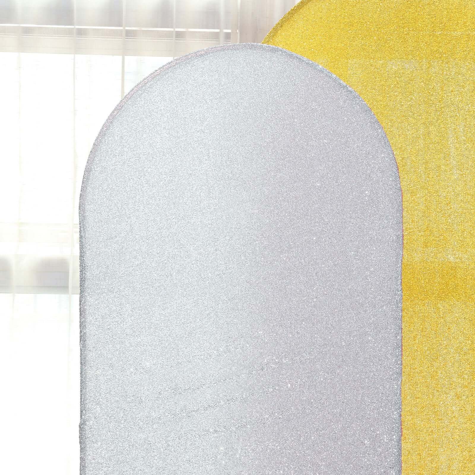 6ft Silver Shimmer Tinsel Spandex Chiara Backdrop Stand Cover For Fitted Round Top Wedding Arch