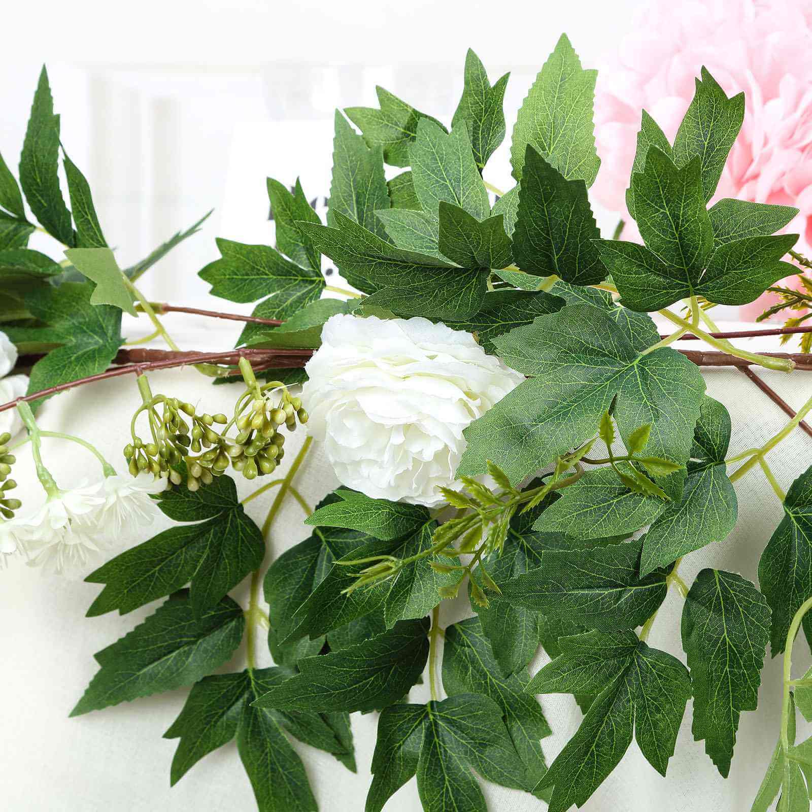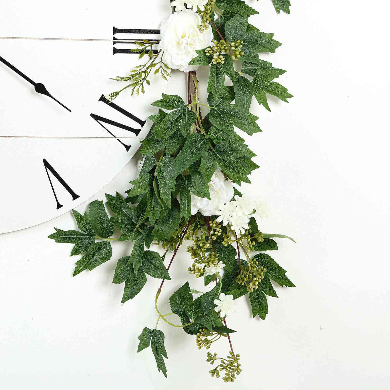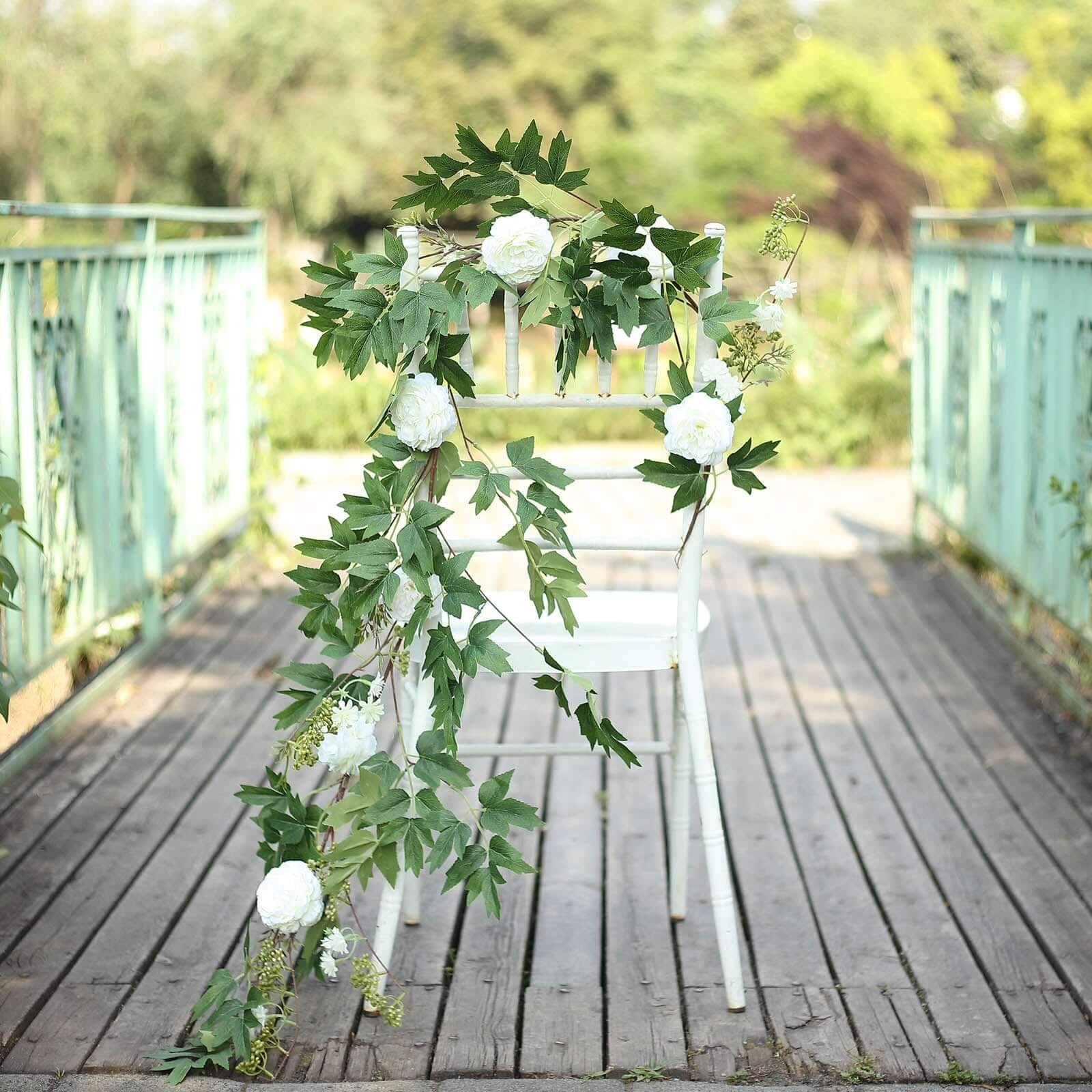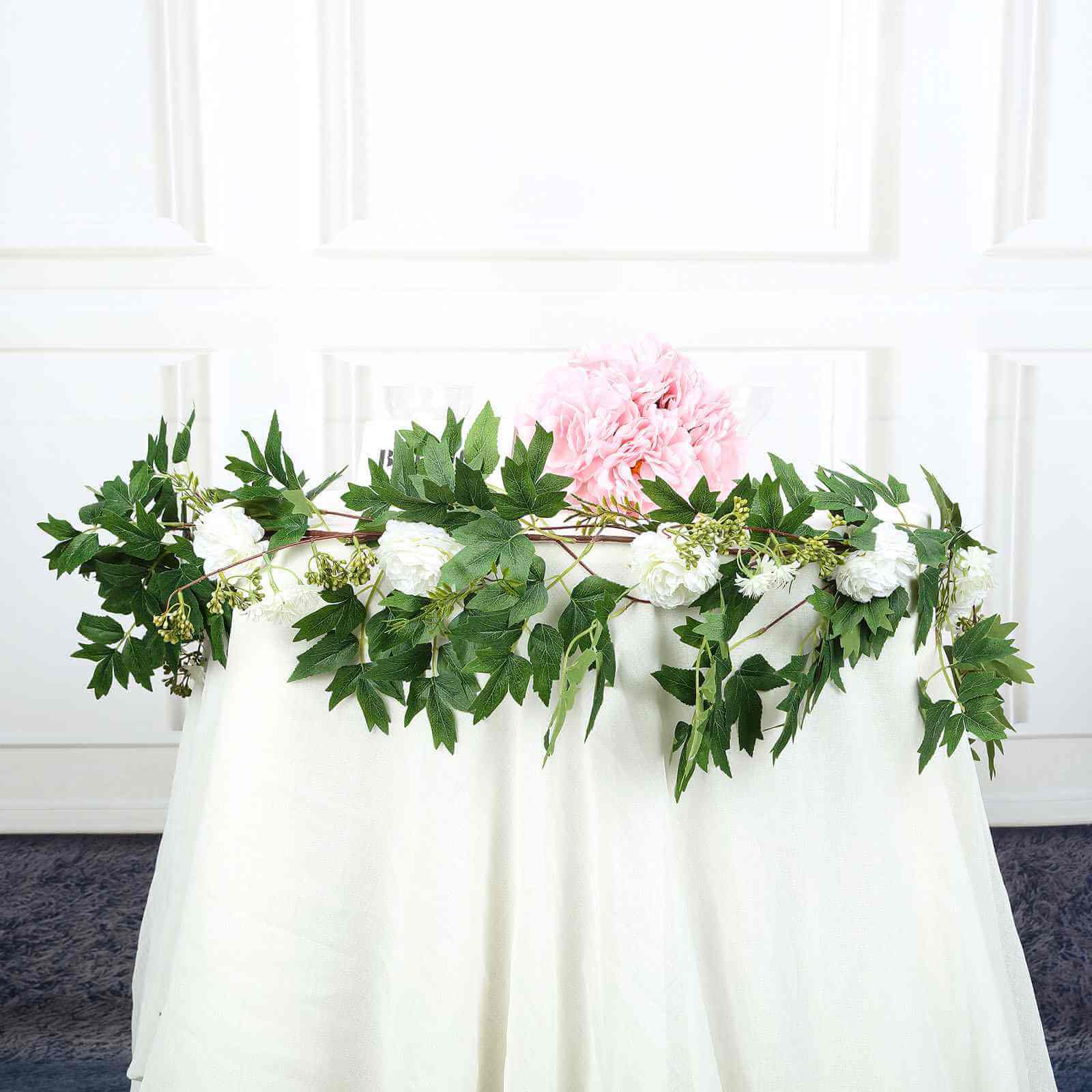 6ft White Artificial Silk Peony Foliage Hanging Flower Garland Vine