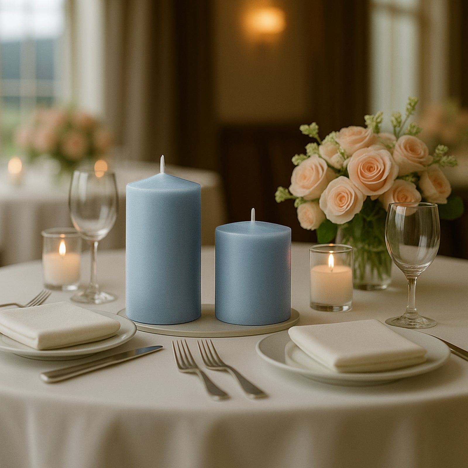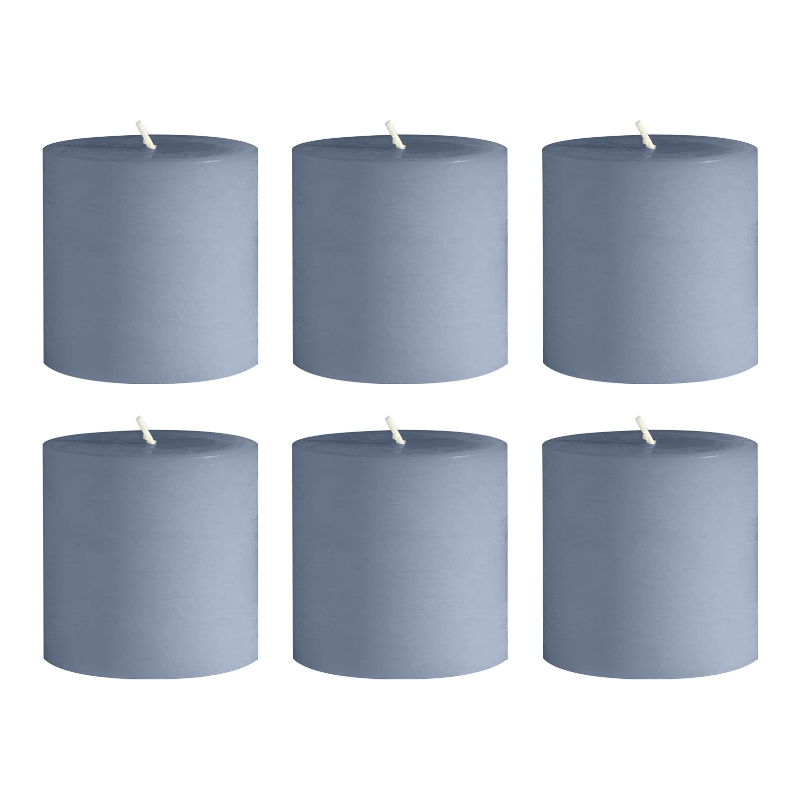 6-Pack Unscented Dripless Pillar Candles – 3"x3" Dusty Blue Paraffin Wax with Smokeless Cotton Wicks, Clean & Long-Lasting 30-Hour Burn