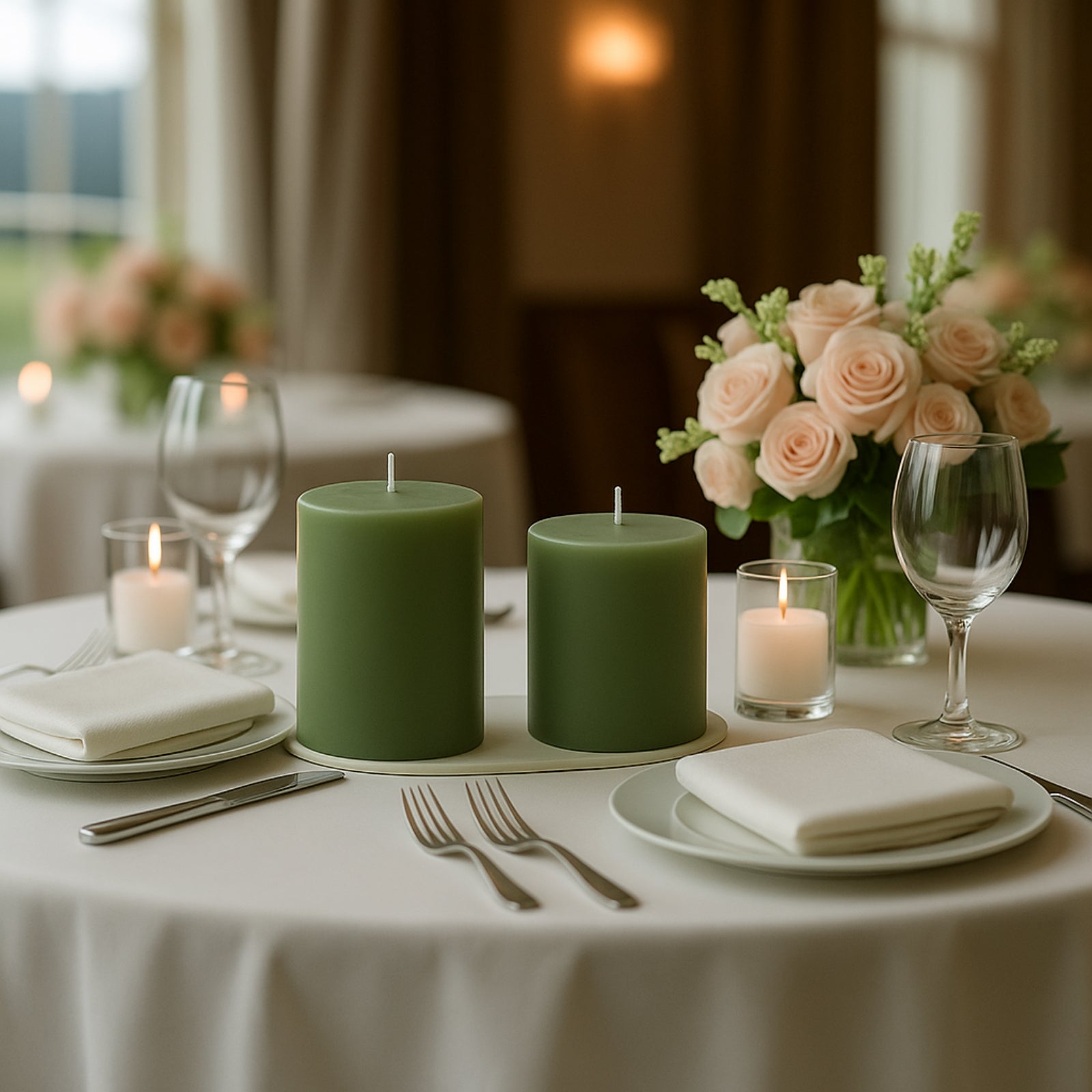 6-Pack Unscented Dripless Pillar Candles – 3"x3" Dusty Sage Green Paraffin Wax with Smokeless Cotton Wicks, Clean & Long-Lasting 30-Hour Burn