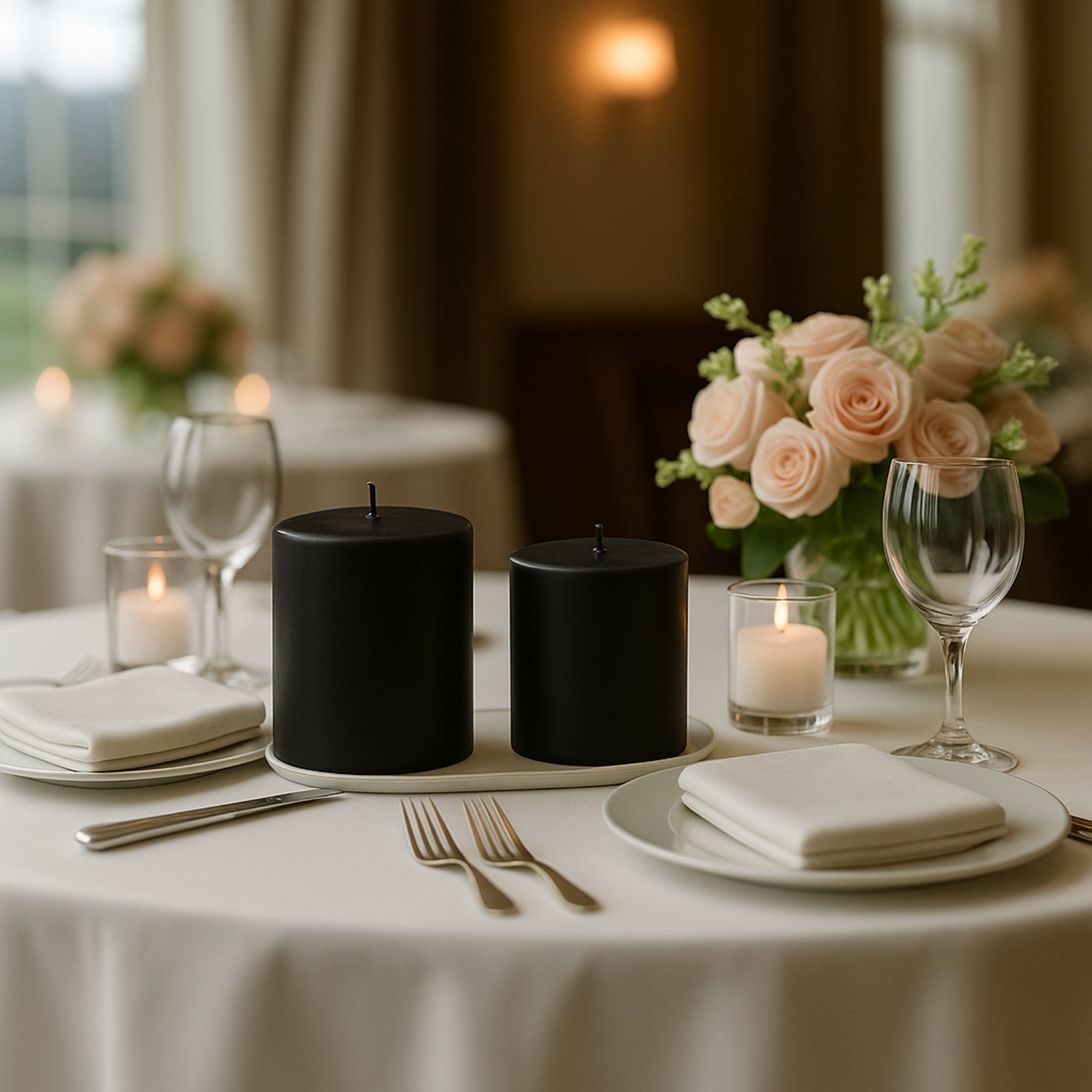 6-Pack Unscented Dripless Pillar Candles – 3"x3" Black Paraffin Wax with Smokeless Cotton Wicks, Clean & Long-Lasting 30-Hour Burn