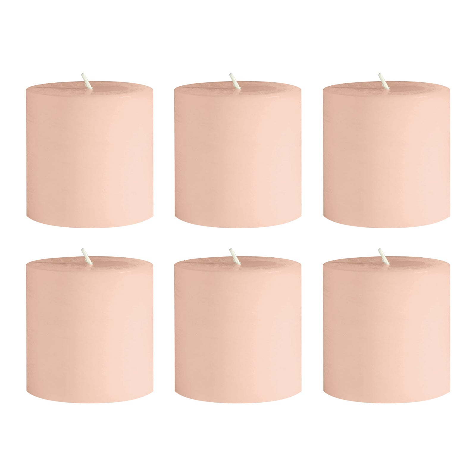 6-Pack Unscented Dripless Pillar Candles – 3"x3" Blush Paraffin Wax with Smokeless Cotton Wicks, Clean & Long-Lasting 30-Hour Burn
