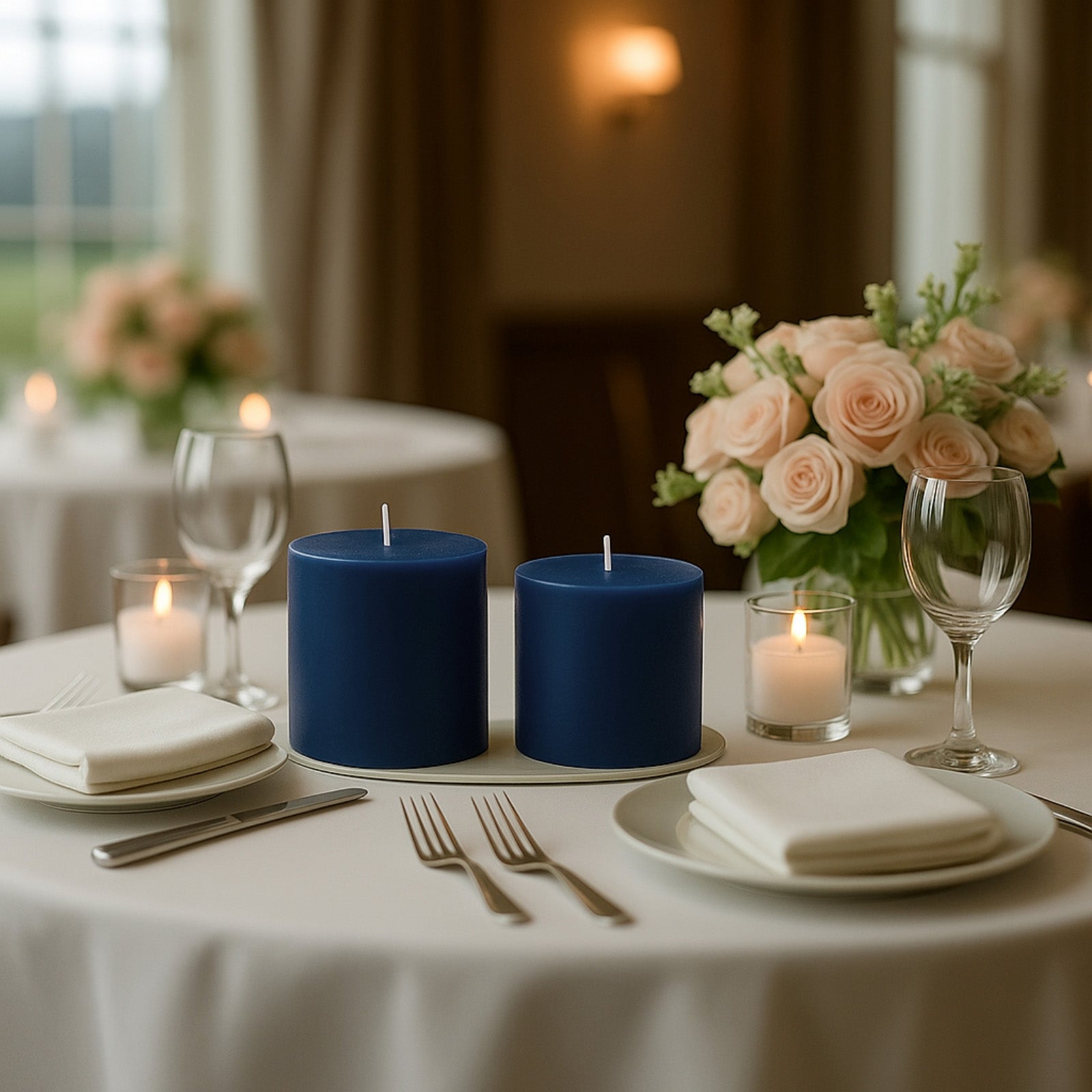 6-Pack Unscented Dripless Pillar Candles – 3"x3" Navy Blue Paraffin Wax with Smokeless Cotton Wicks, Clean & Long-Lasting 30-Hour Burn