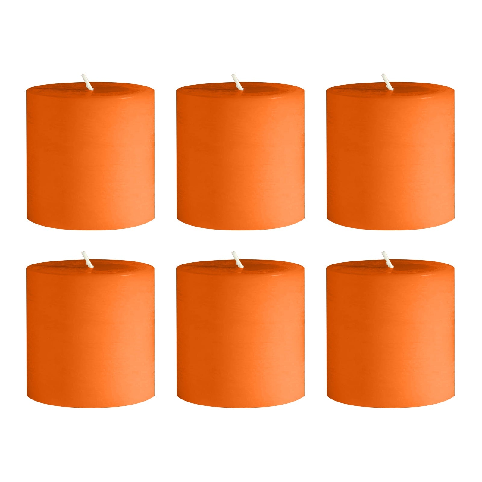 6-Pack Unscented Dripless Pillar Candles – 3"x3" Orange Paraffin Wax with Smokeless Cotton Wicks, Clean & Long-Lasting 30-Hour Burn