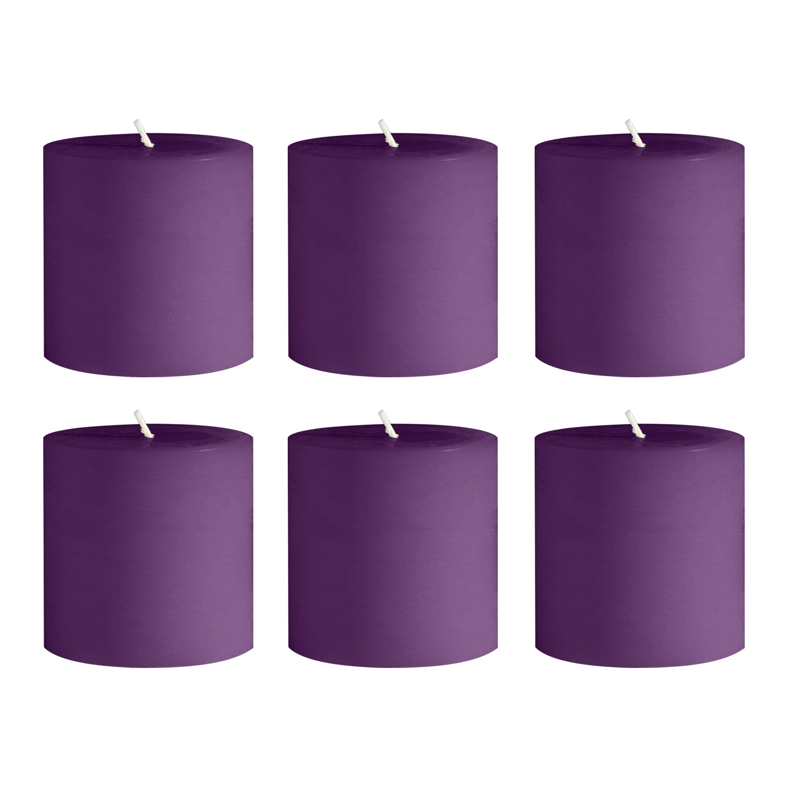 6-Pack Unscented Dripless Pillar Candles – 3"x3" Purple Paraffin Wax with Smokeless Cotton Wicks, Clean & Long-Lasting 30-Hour Burn