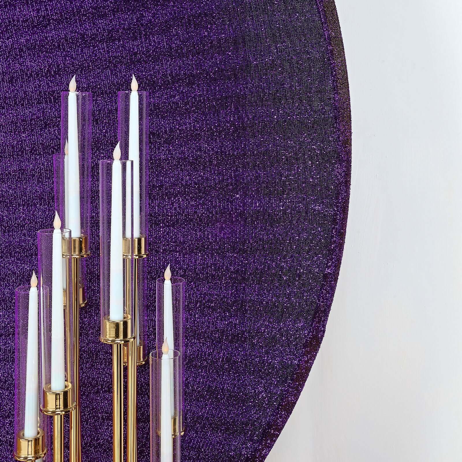 7.5ft Purple Metallic Shimmer Tinsel Spandex Round Wedding Arch Cover, 2-Sided Photo Backdrop
