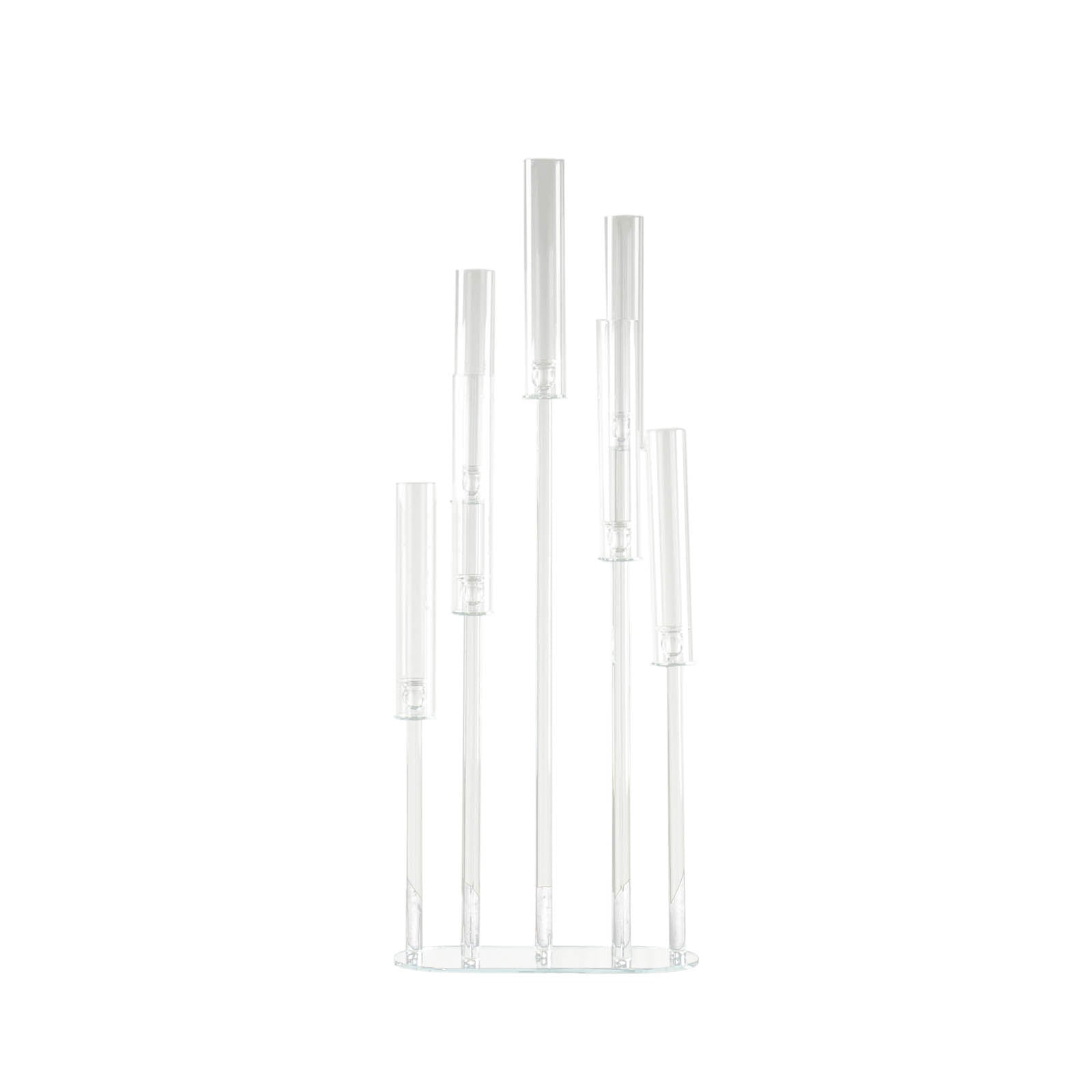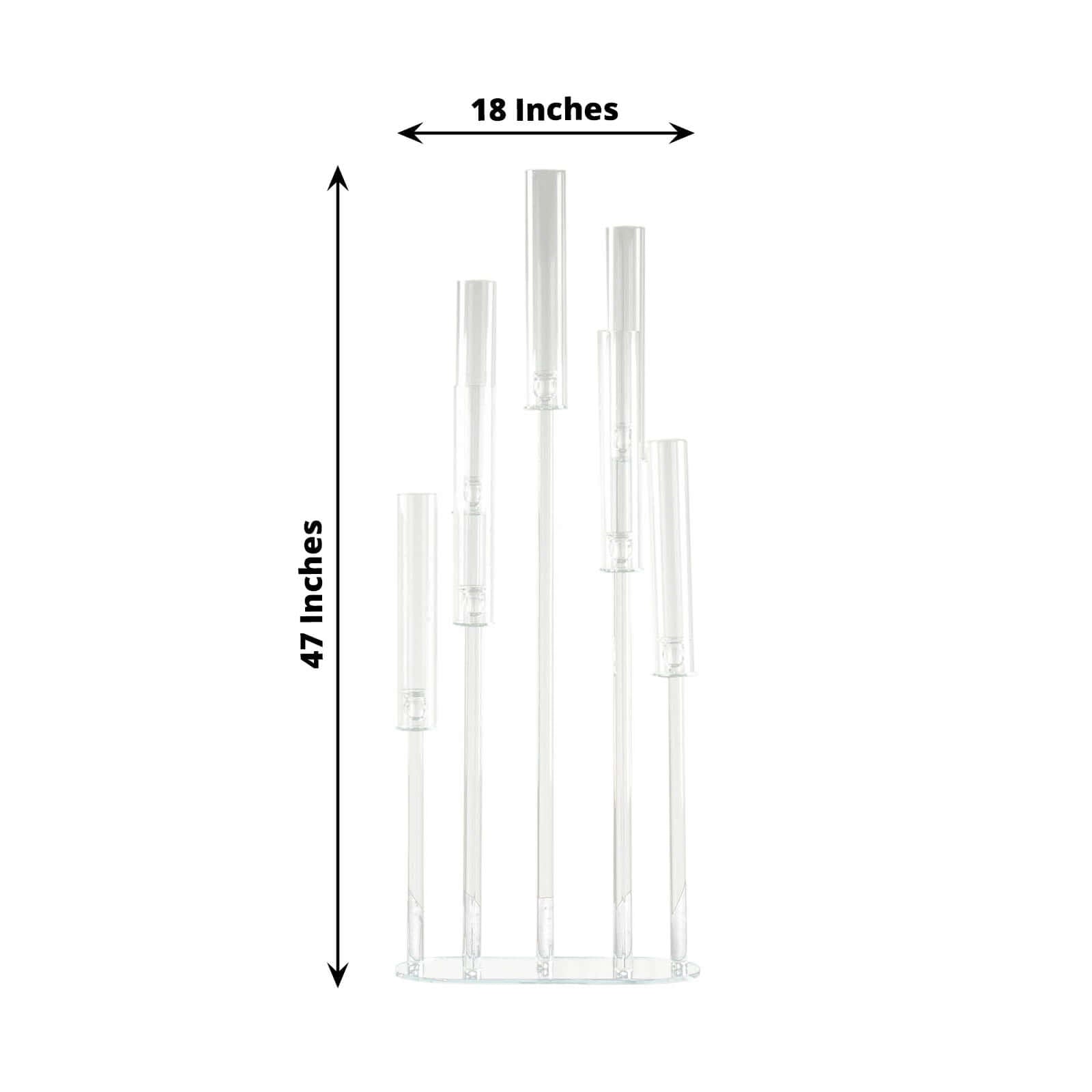7-Arm Clear Crystal Cluster Candelabra with Hurricane Shades - Stylish Wedding Aisle Table Centerpiece 47"