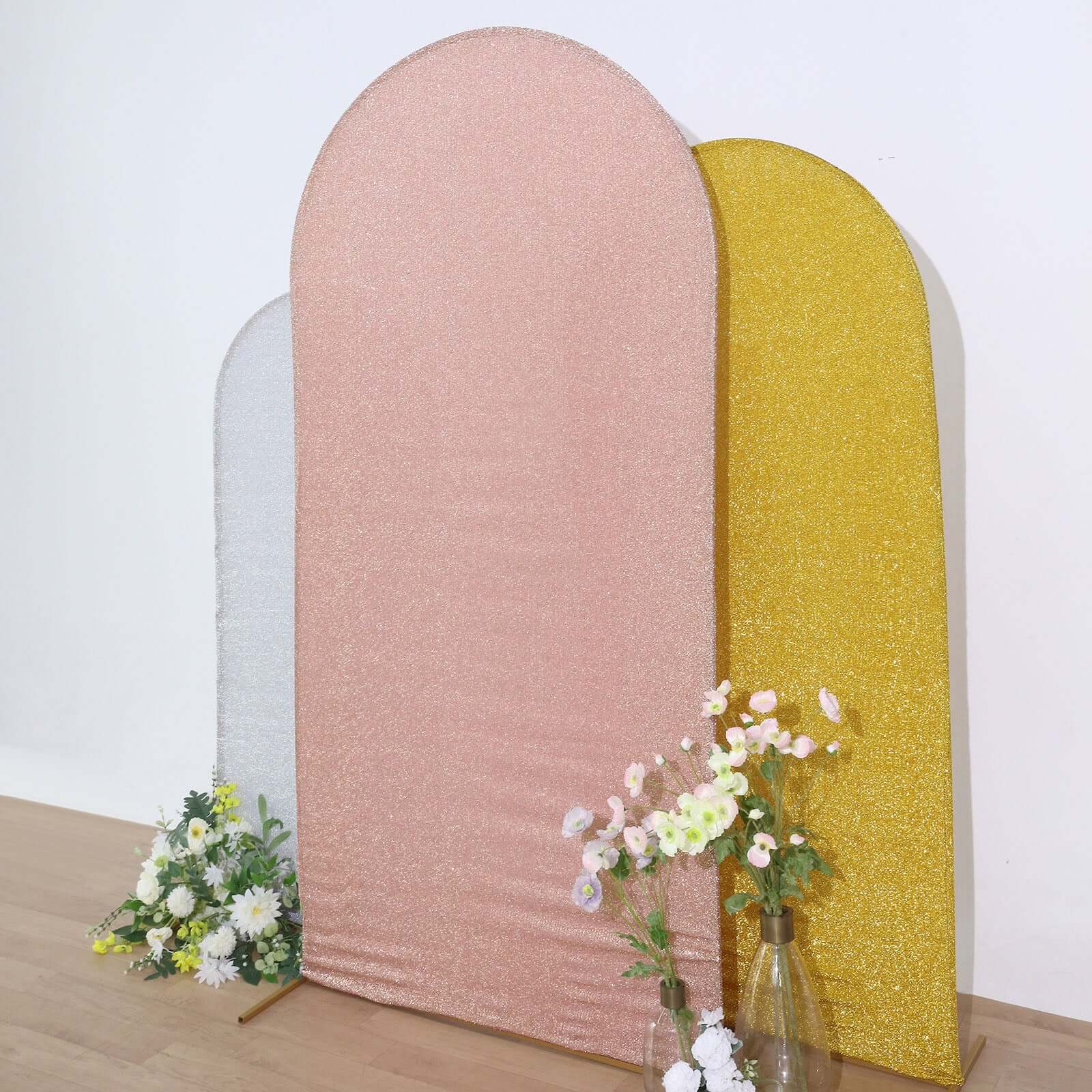 7ft Rose Gold Shimmer Tinsel Spandex Chiara Backdrop Stand Cover For Fitted Round Top Wedding Arch