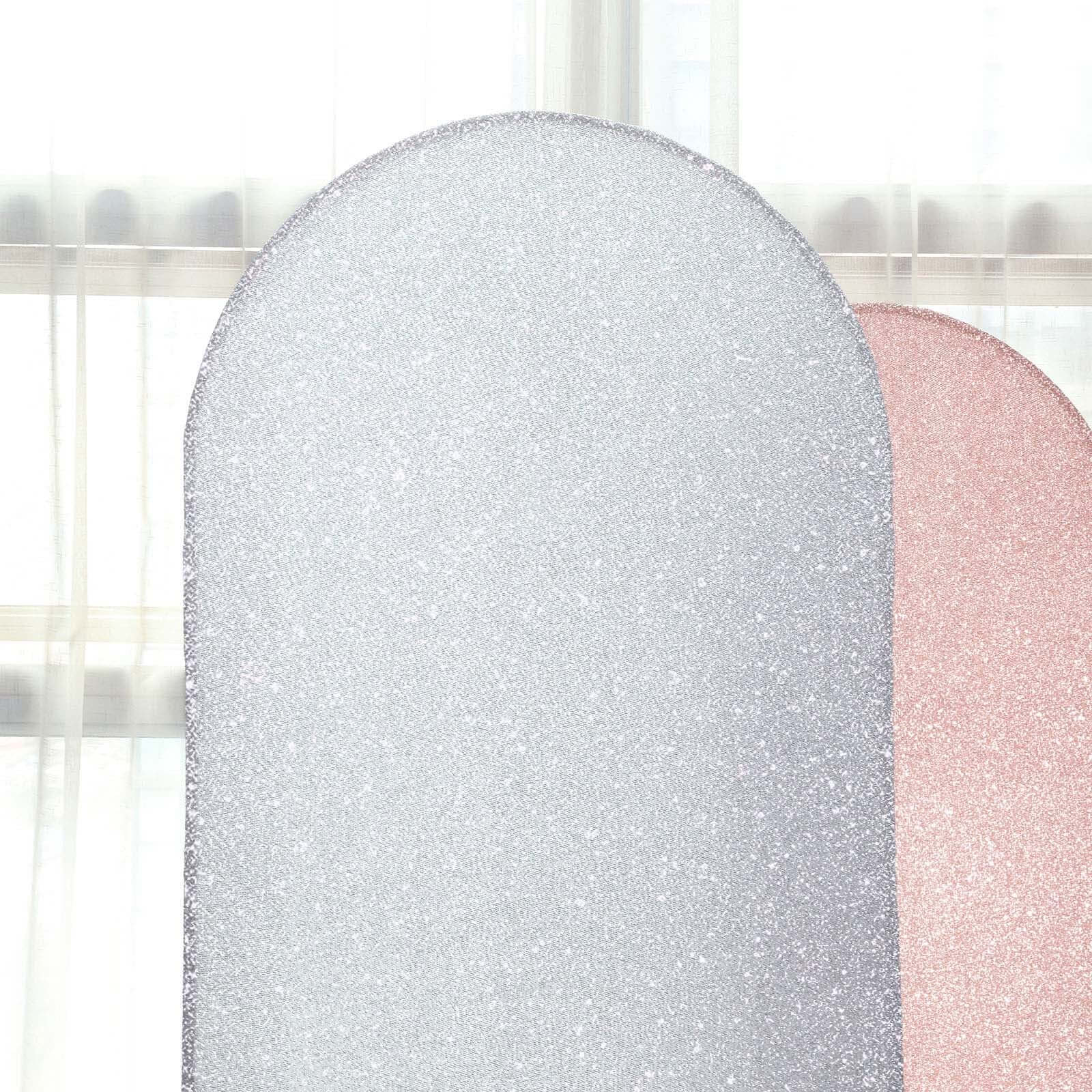 7ft Silver Shimmer Tinsel Spandex Chiara Backdrop Stand Cover For Fitted Round Top Wedding Arch