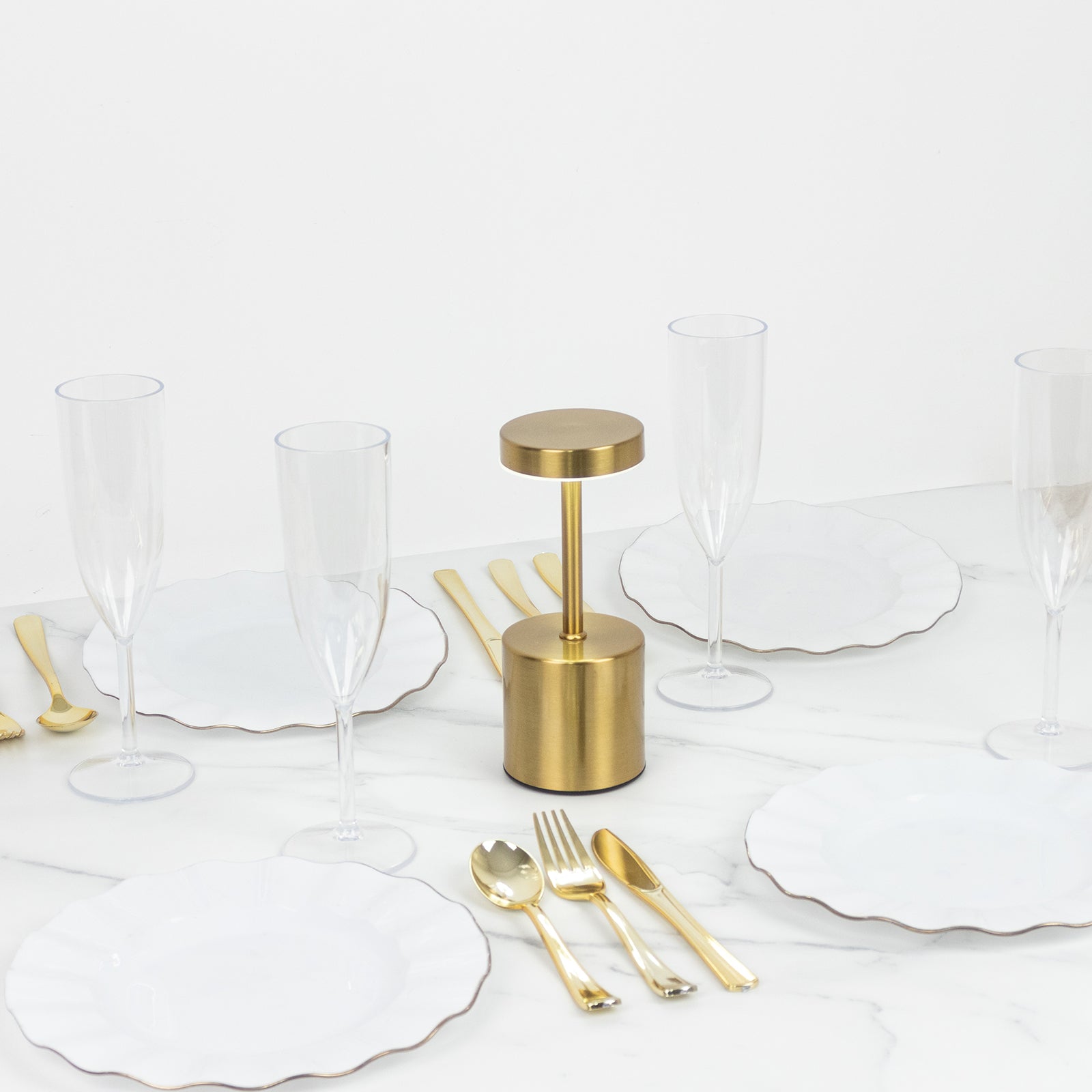 Gold Metal LED Table Lamp – 8" Cordless USB Rechargeable, Dimmable Touch-Control Night Light, Modern Minimalist Design