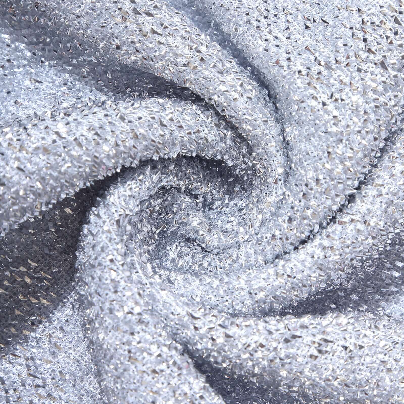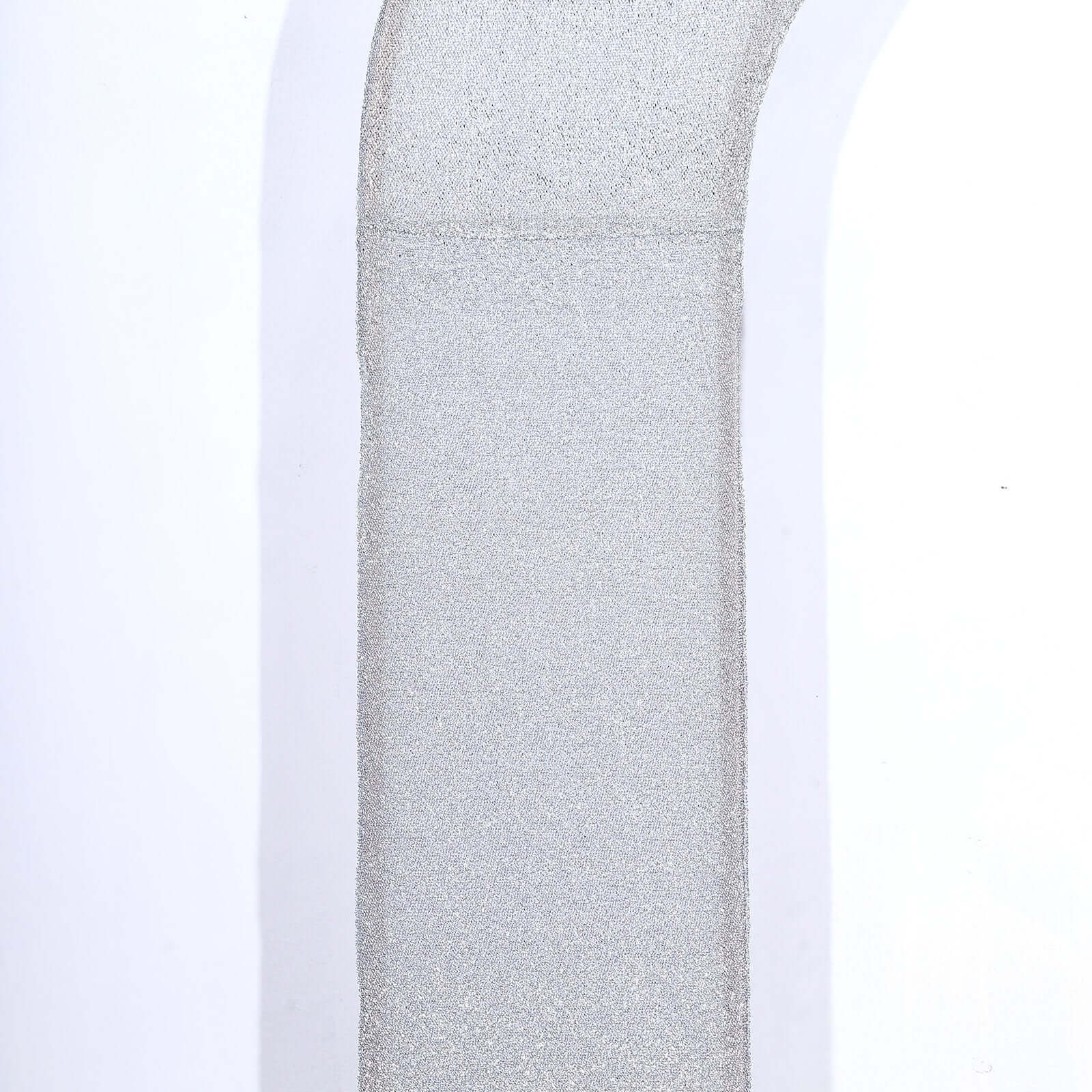 8ft Silver Spandex Fitted U-Shaped Wedding Arch Cover With Shimmer Tinsel Finish, Double-Sided Open Arch Backdrop Slipcover
