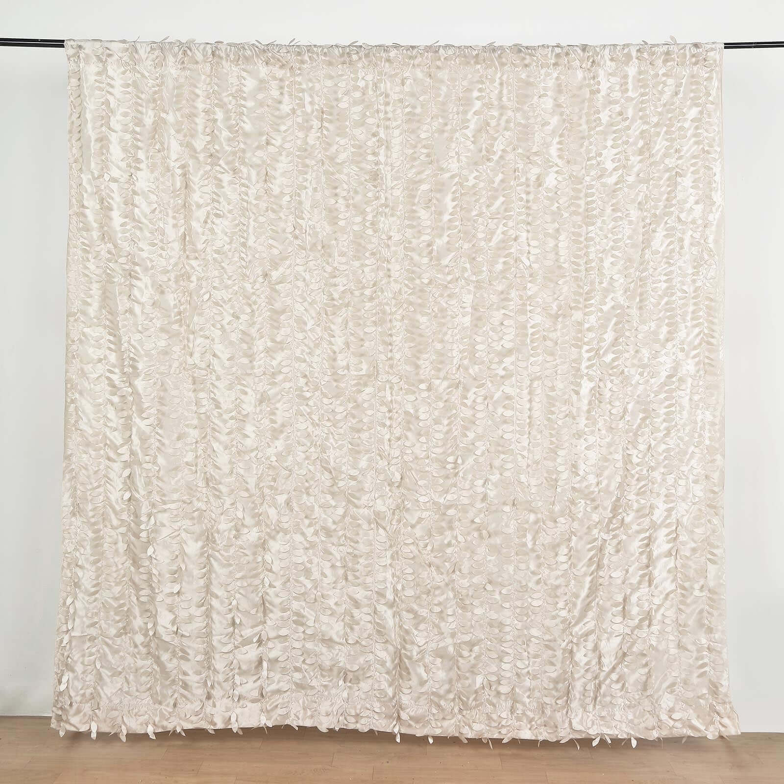 8ftx8ft Beige 3D Leaf Petal Taffeta Event Curtain Drapes, Backdrop Event Panel With Rod Pocket