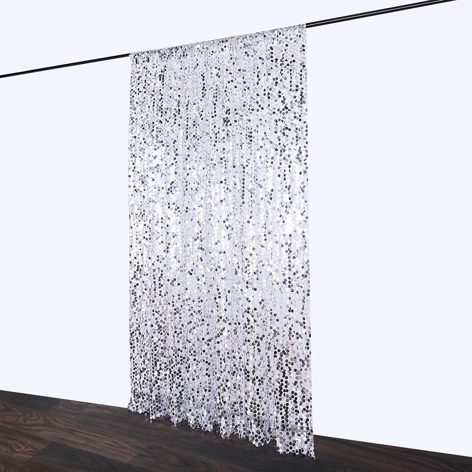 8ftx8ft Silver Big Payette Sequin Event Curtain Drapes, Backdrop Event Panel