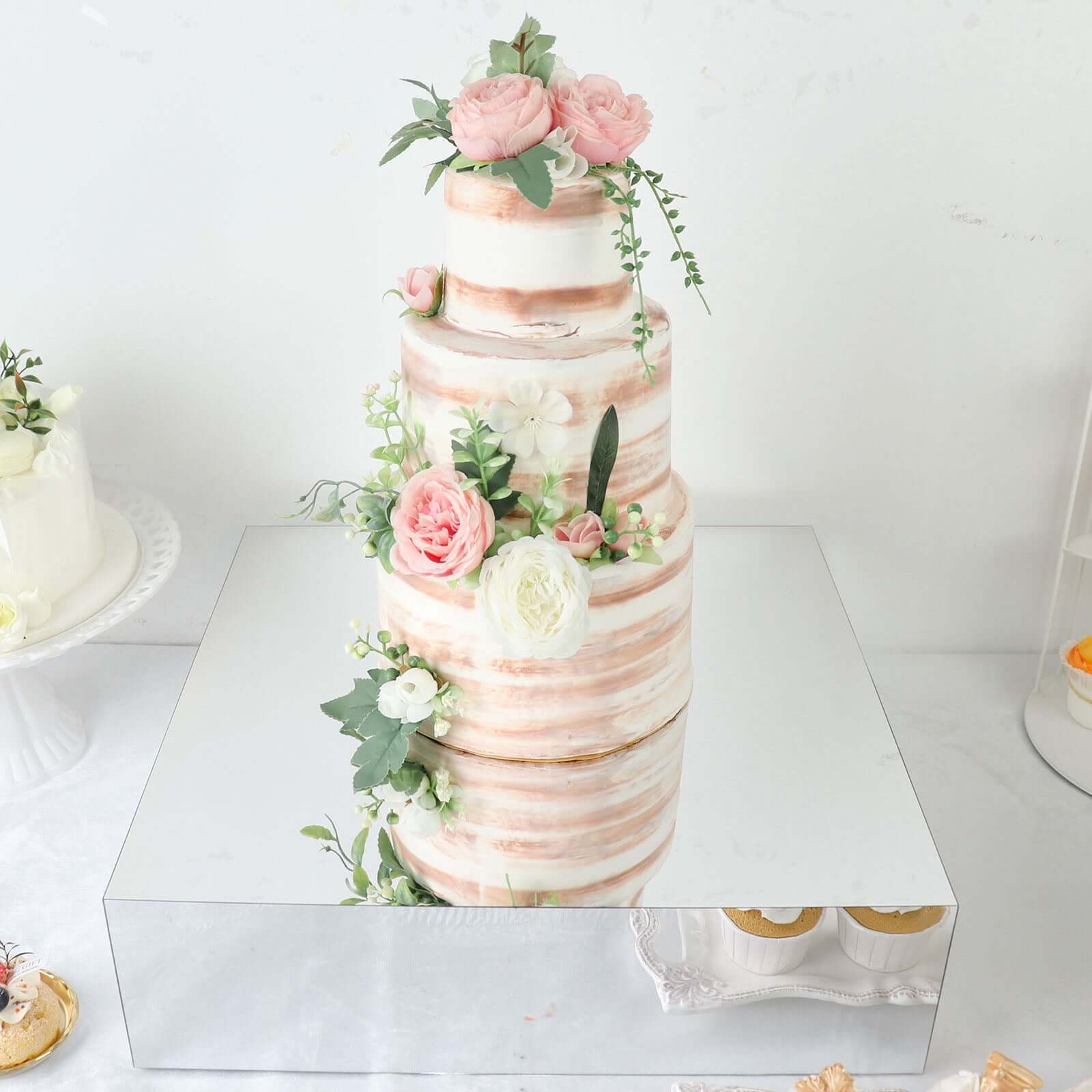 Acrylic Cake Box Stand Pedestal Riser Mirror Finish Silver - Decorative Display for Weddings 18"x18"