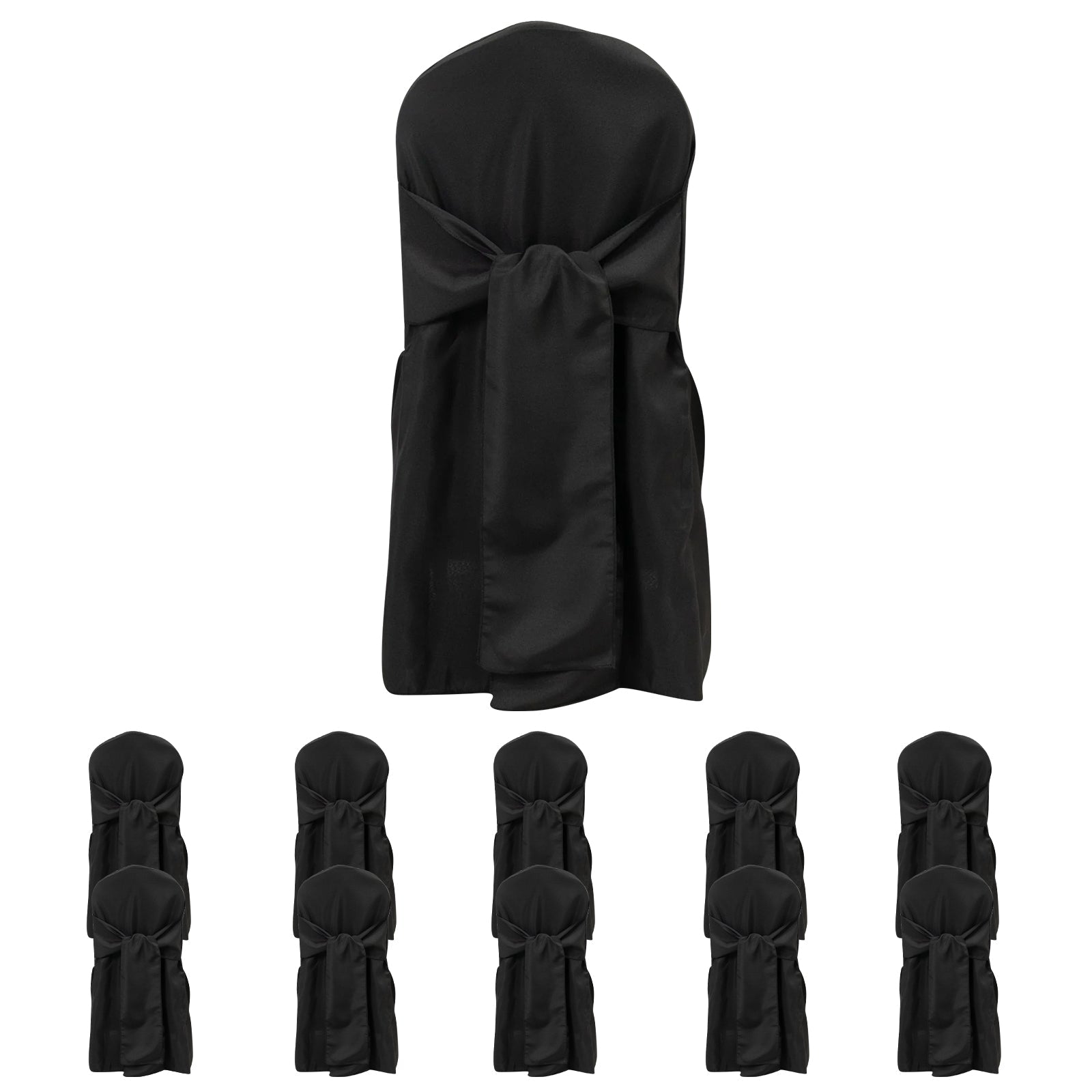 10-Pack Polyester Slip-On Banquet Chair Covers with Attached Sashes – Black Reusable Stain-Resistant Covers for Wedding & Event Decor