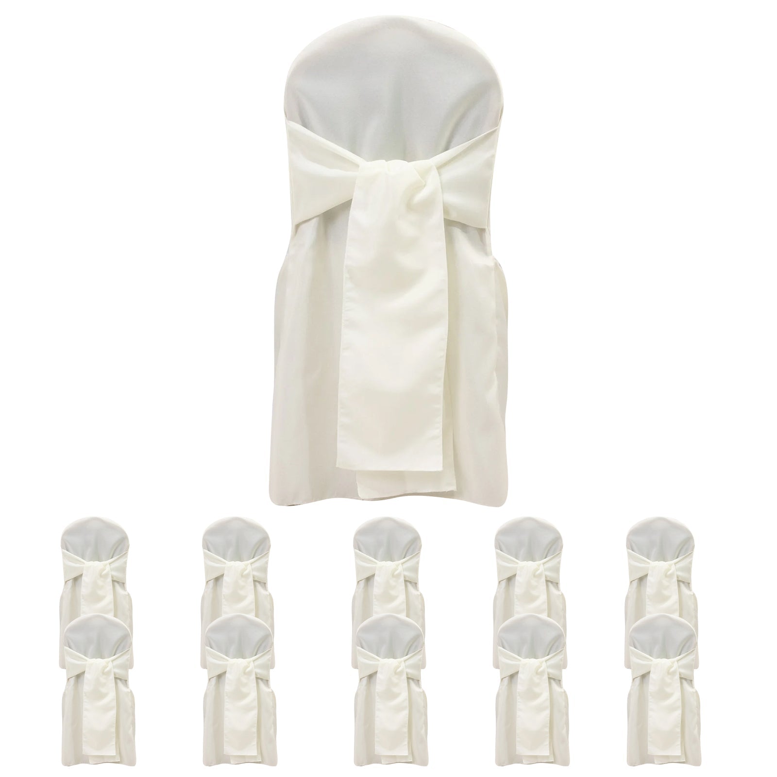 10-Pack Polyester Slip-On Banquet Chair Covers with Attached Sashes – Ivory Reusable Stain-Resistant Covers for Wedding & Event Decor